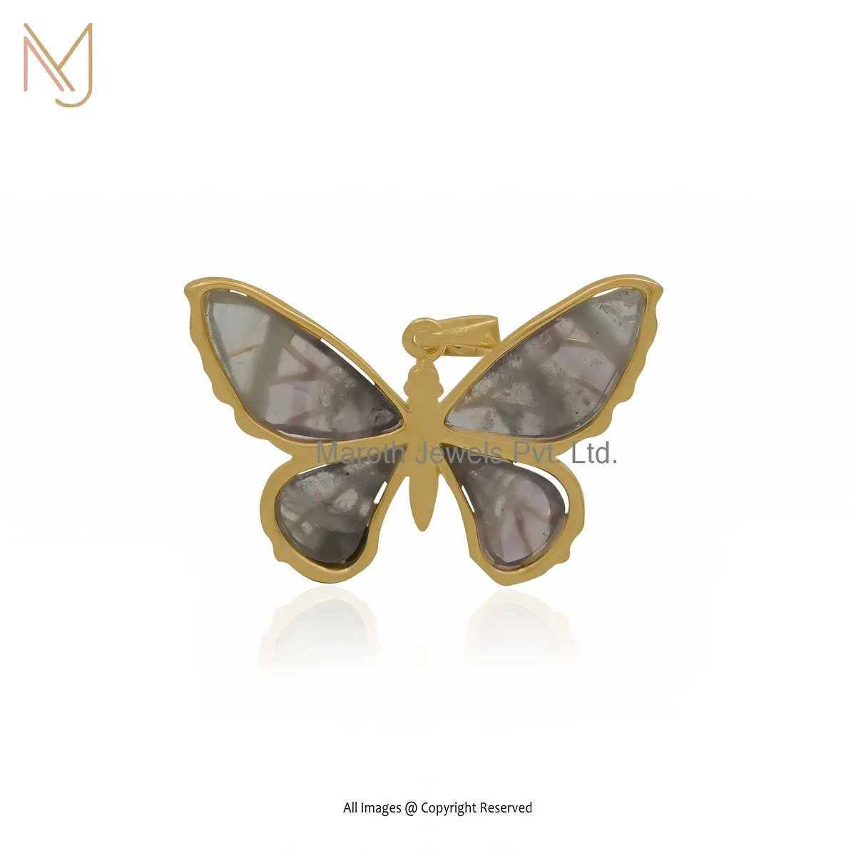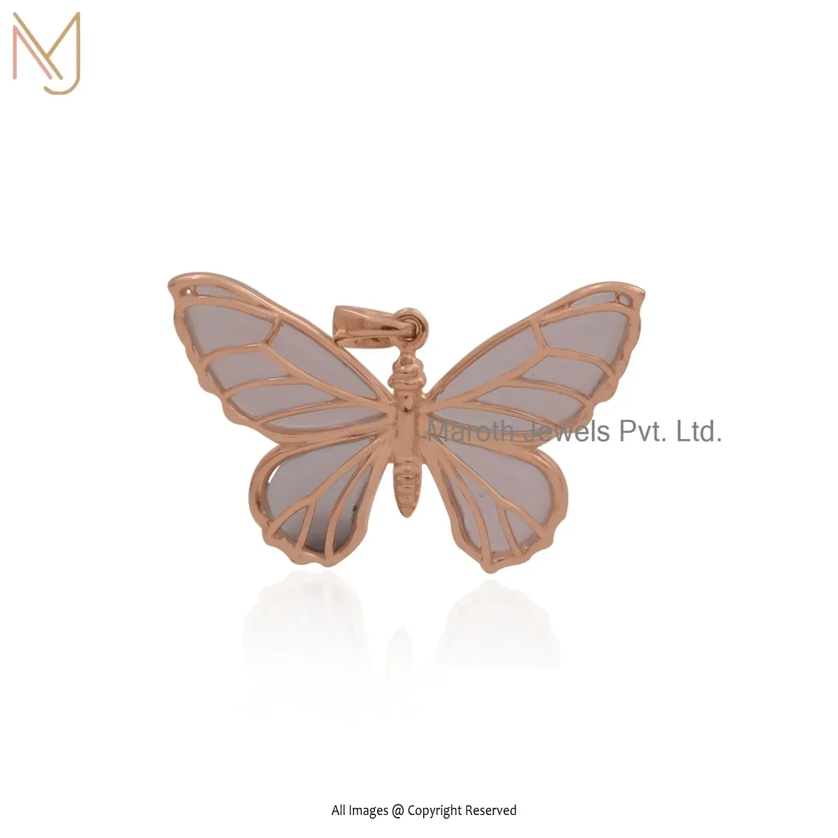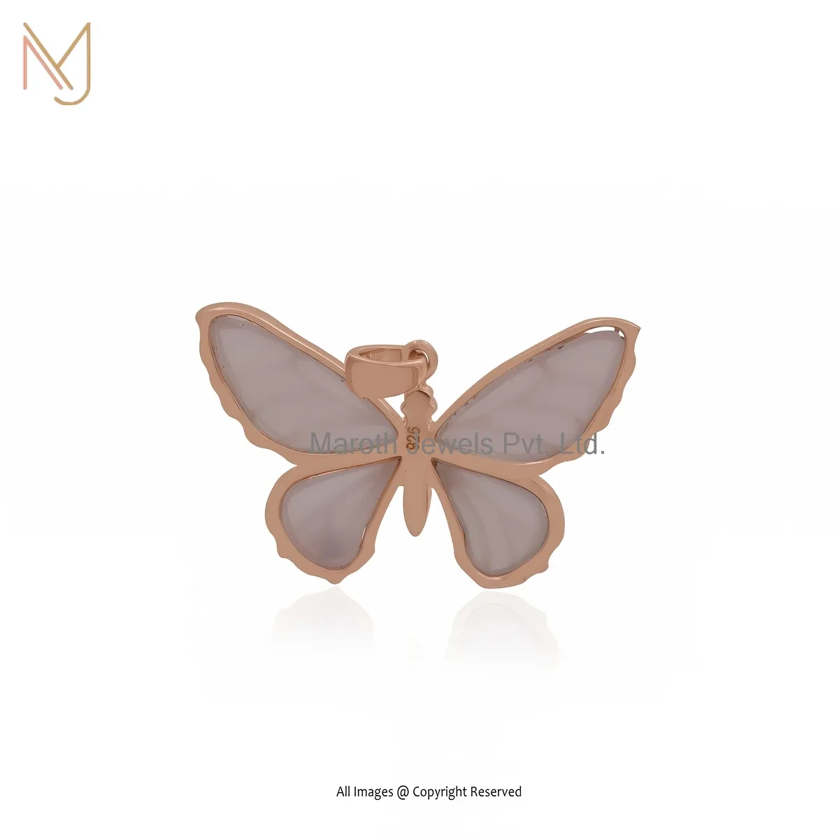 925 Silver Yellow Gold Plated Rose Quartz Butterfly Pendant Custom Jewelry