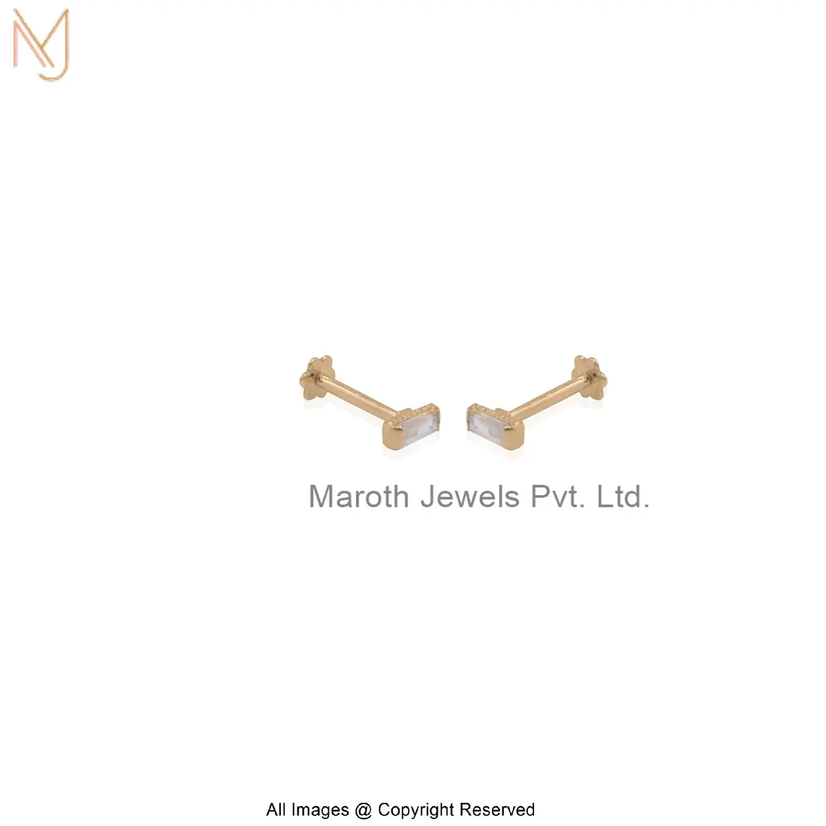 925 Silver Yellow Gold Plated White Topaz Baguette Stud Earring Custom Jewelry