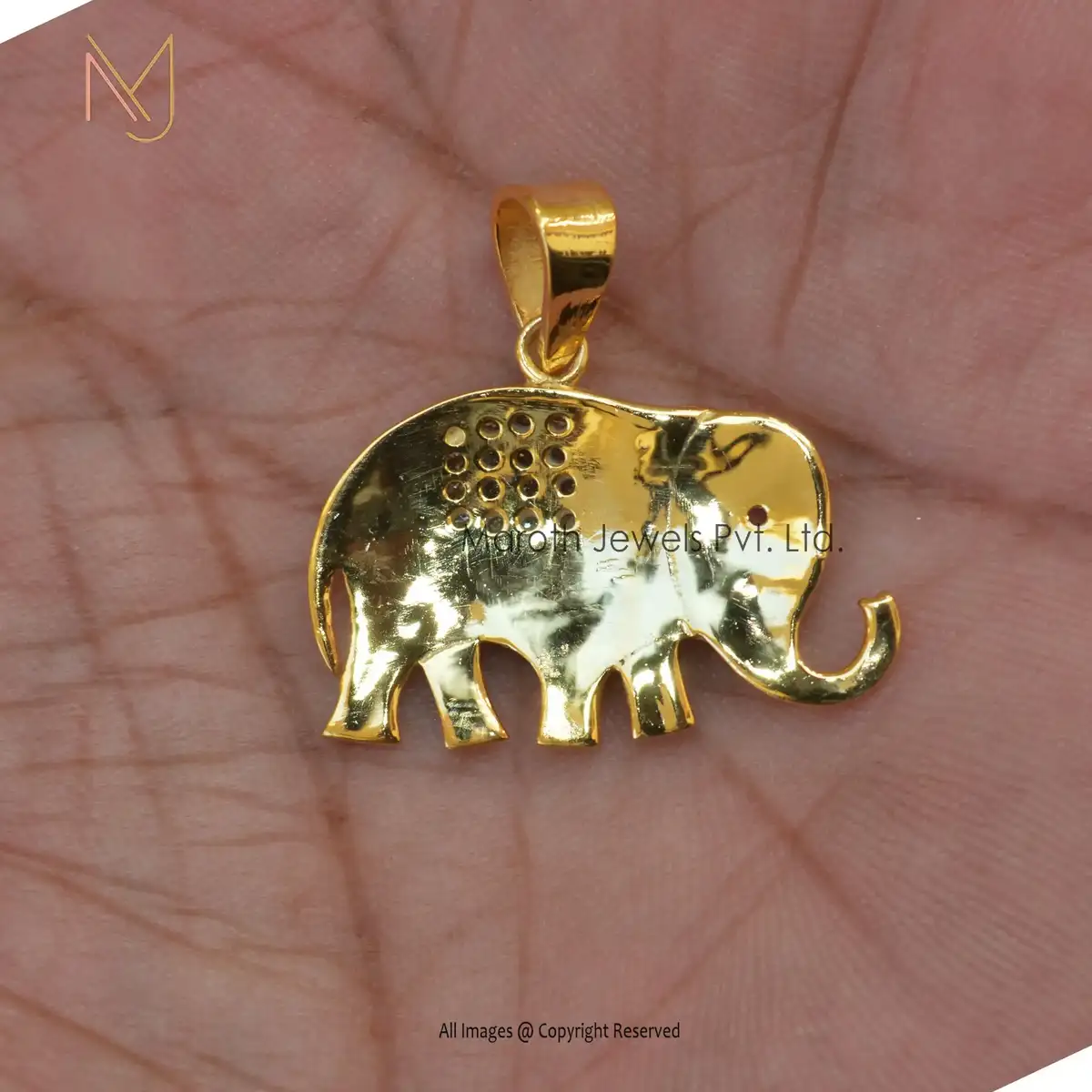 925 Silver Yellow Gold RH Pave Diamond & Pink Sapphire Gemstone Elephant Design Pendant USA