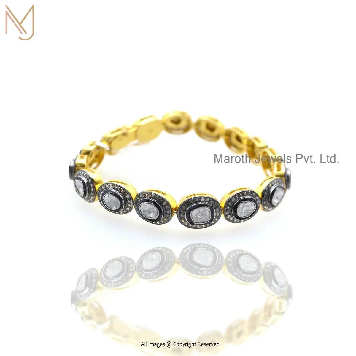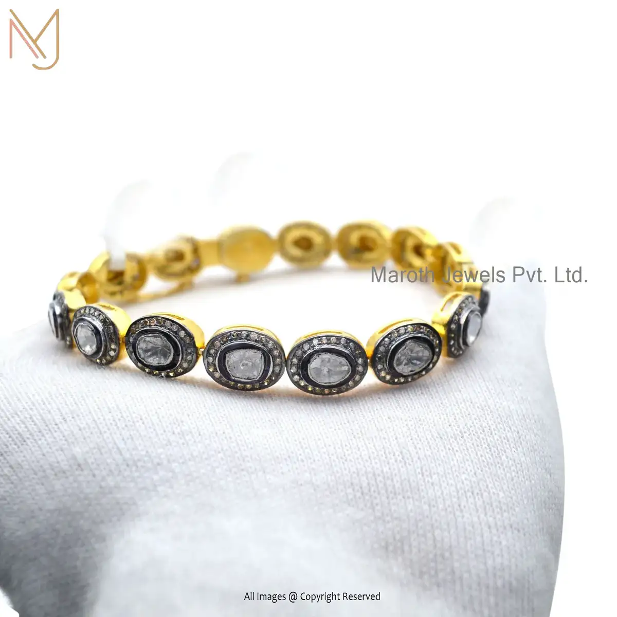 925 Silver Yellow Gold Rhodium Pave Diamond Rose Cut Diamond Bracelet USA