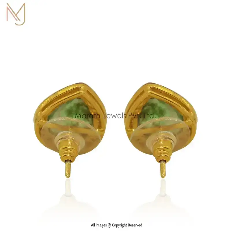 925 Silver Yellow Gold Rhodium Plated Pave Diamond Emerald Stud Designer Earring Jewelry Supplier