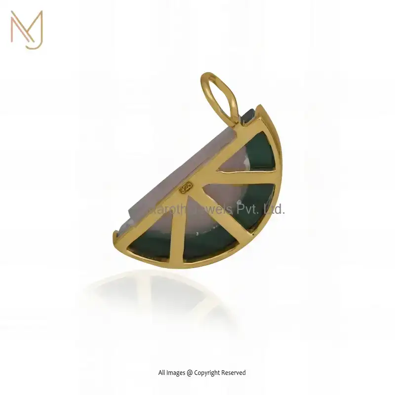 925 Silver Yellow Gold Rhodolite Green Opal & Blue Sapphier Carved Gemstone Fruit Pendant Jewelry Supplier