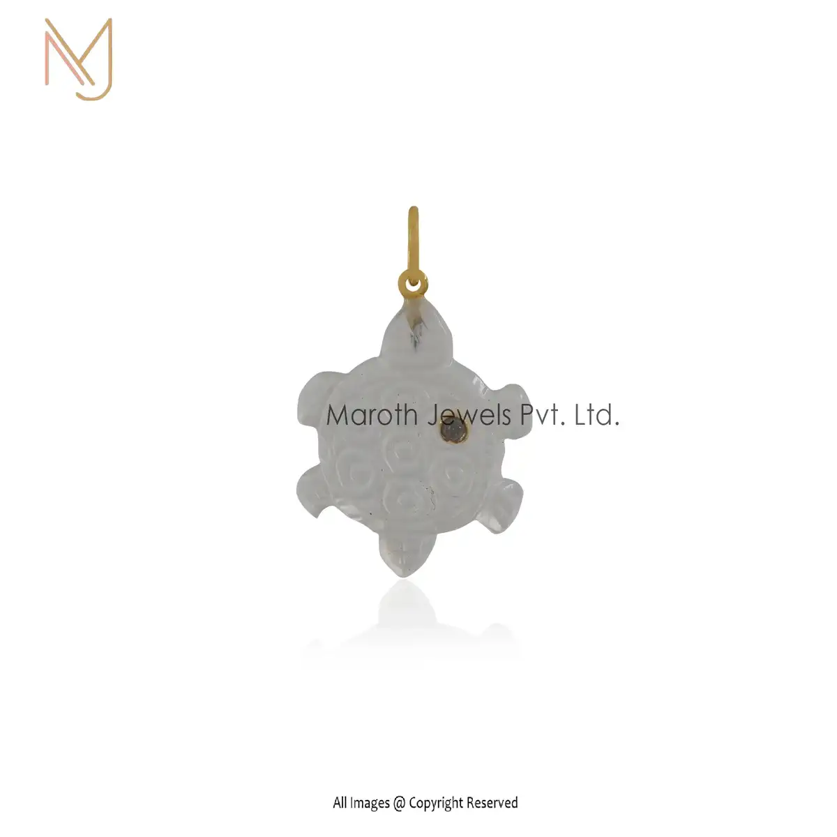 925 Silver Yellow Gold Selenite & Diamond Tortoise Pendant Jewelry Supplier