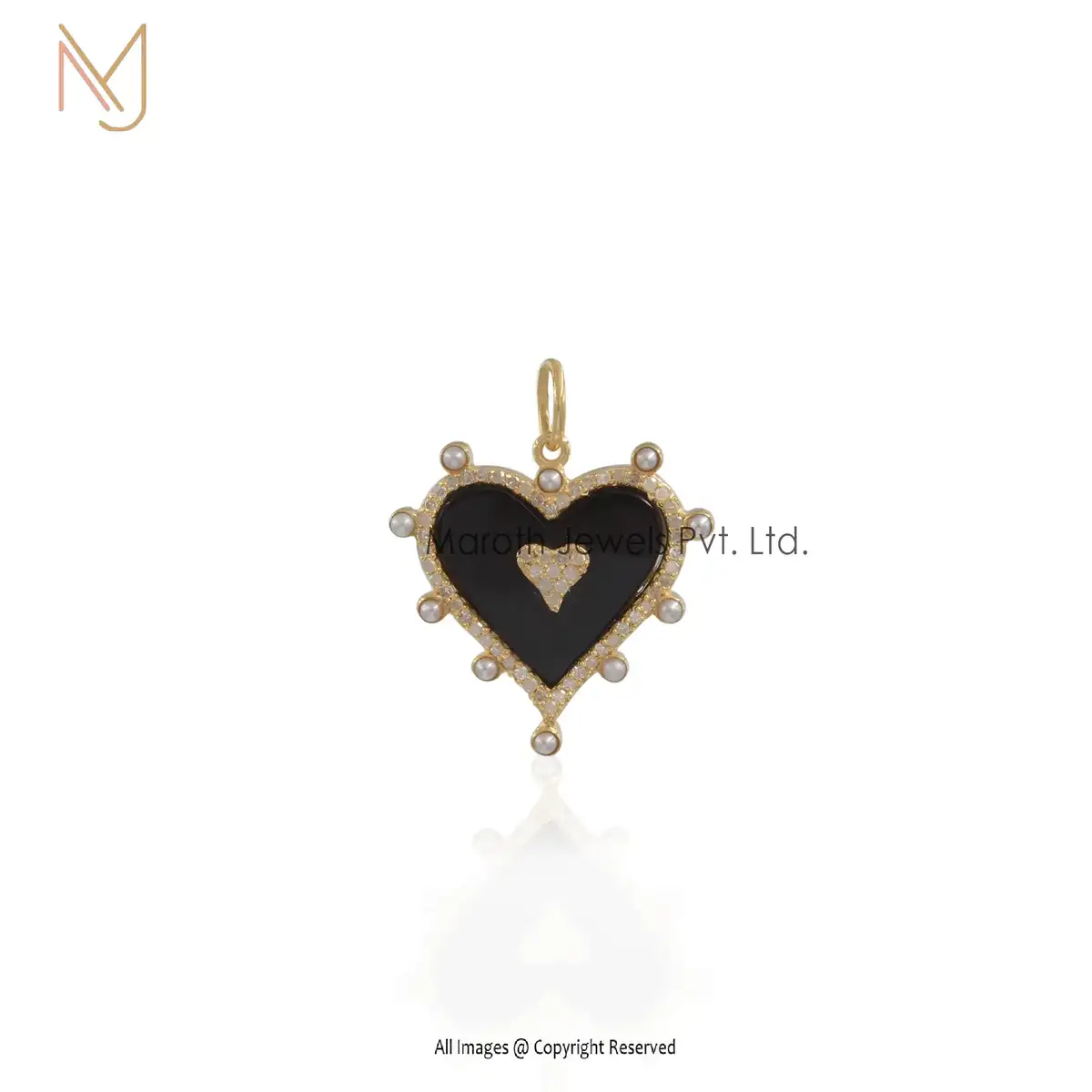925 Silver Yellow Gold Turquoise & Moissanite & Pearl Heart Pendant Jewelry Supplier
