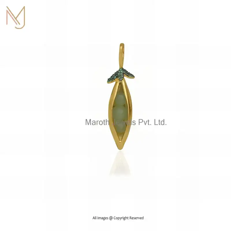 925 Sterling Silver Yellow Gold Plated And Black Rhodium Chrysoprase & Green CZ Peas Gemstone Pendant USA
