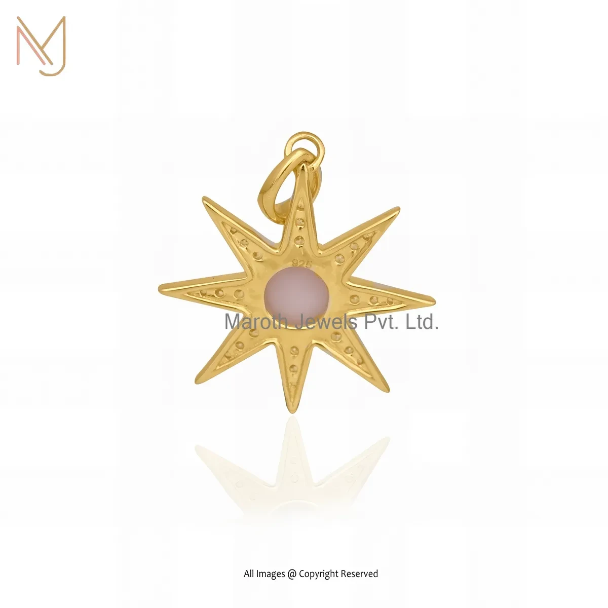925 Sterling Silver Yellow Gold Plated Cubic Zircon & Pink Opal Gemstone Star Charm Pendant USA