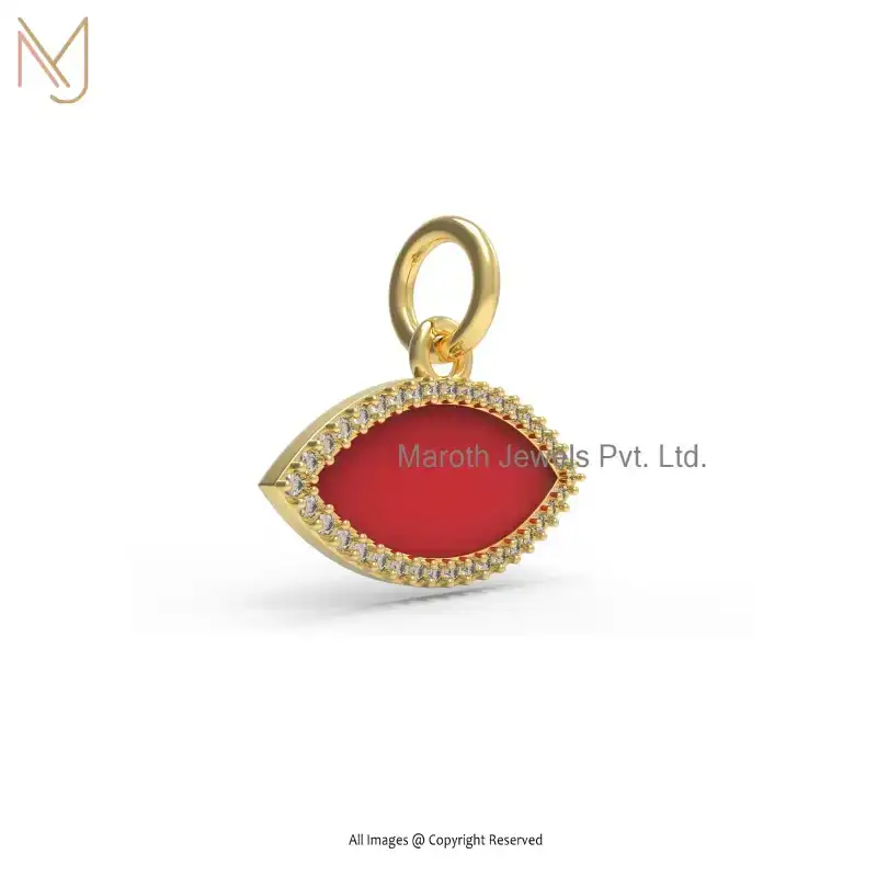 925 Sterling Silver Yellow Gold Plated Diamond Red Enamel Evil Eye Pendant Jewelry Supplier