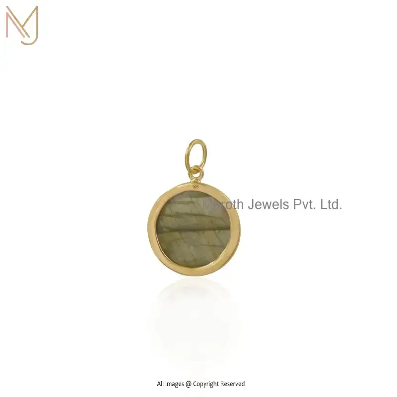 925 Sterling Silver Yellow Gold Plated Labradorite & Cubic Zircon Round Ball Gemstone Pendant Custom Jewelry