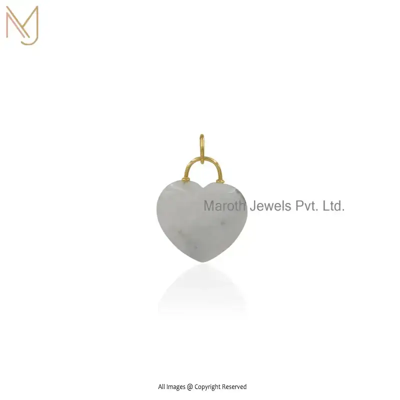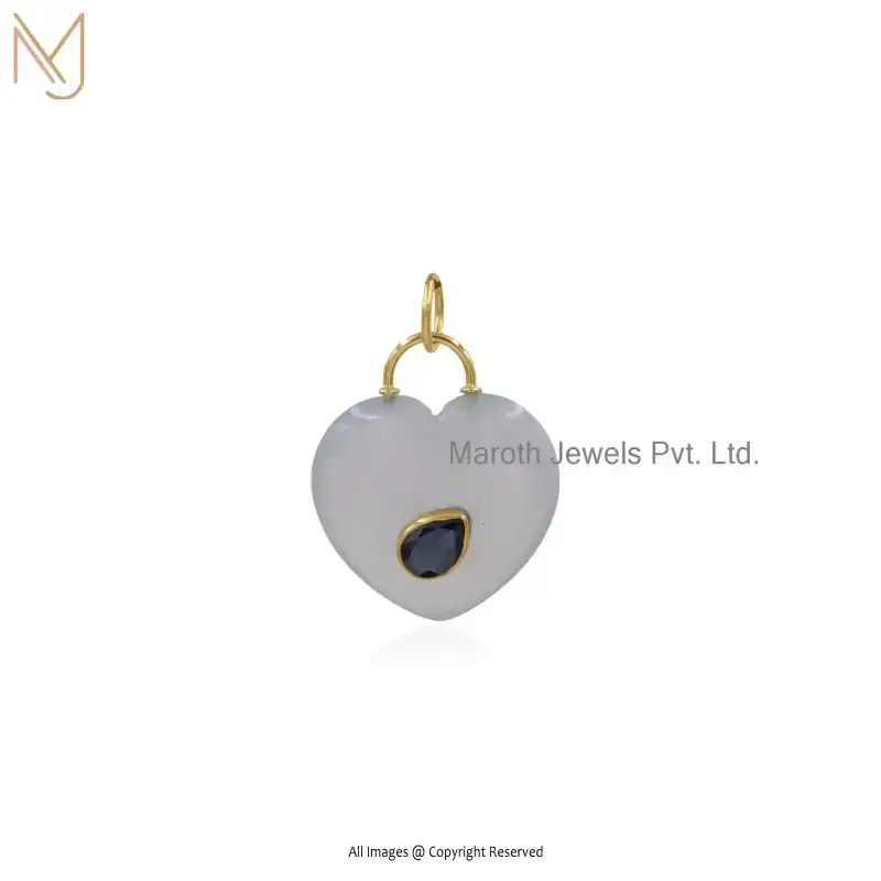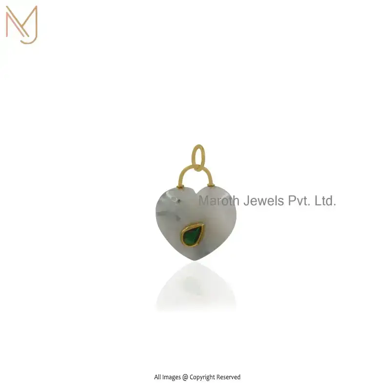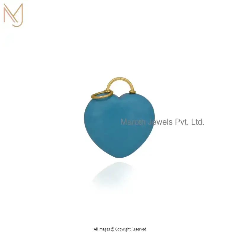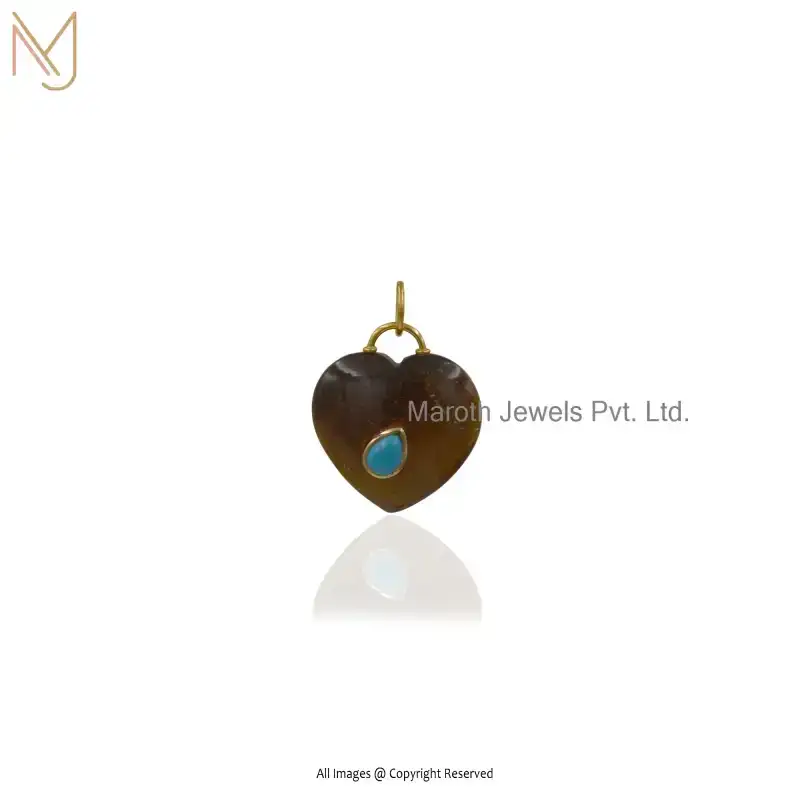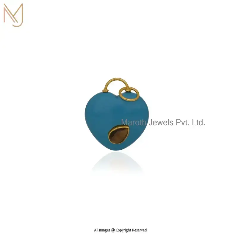 9K Yellow Gold Moonstone And Turqouise Gemstone Heart Pendant Jewelry Supplier