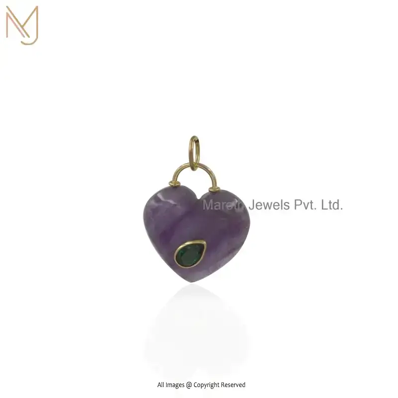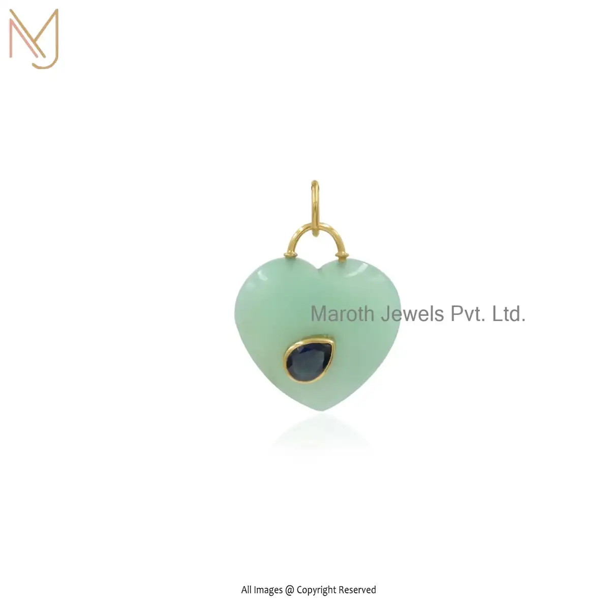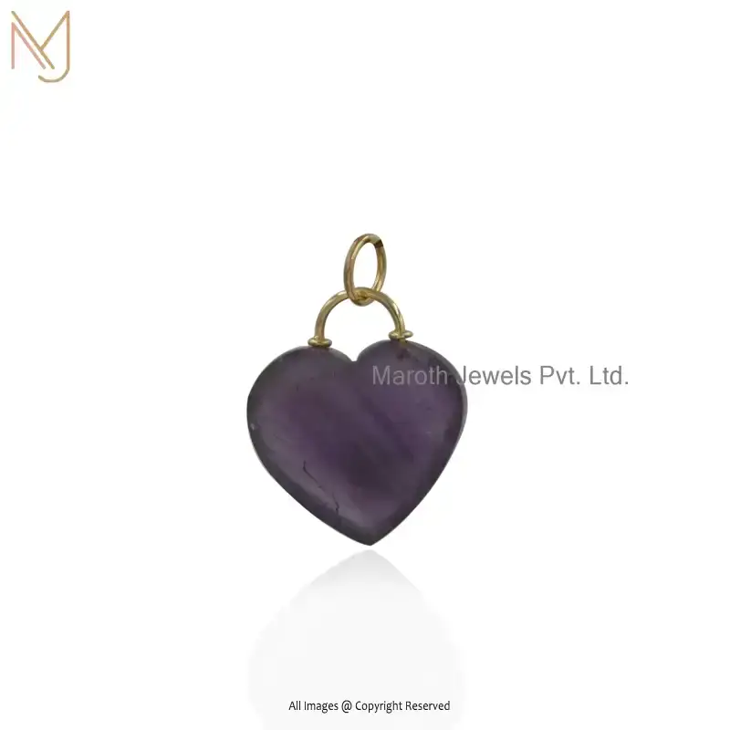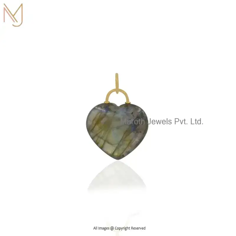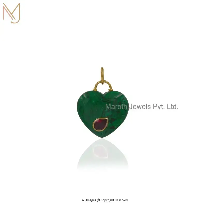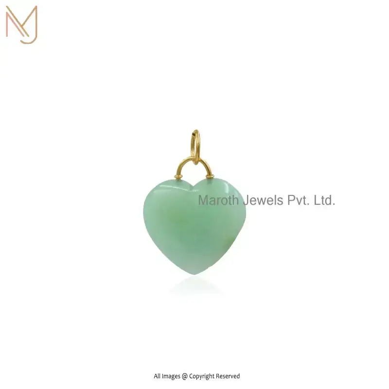 9K Yellow Gold Moonstone And Turqouise Gemstone Heart Pendant Jewelry Supplier