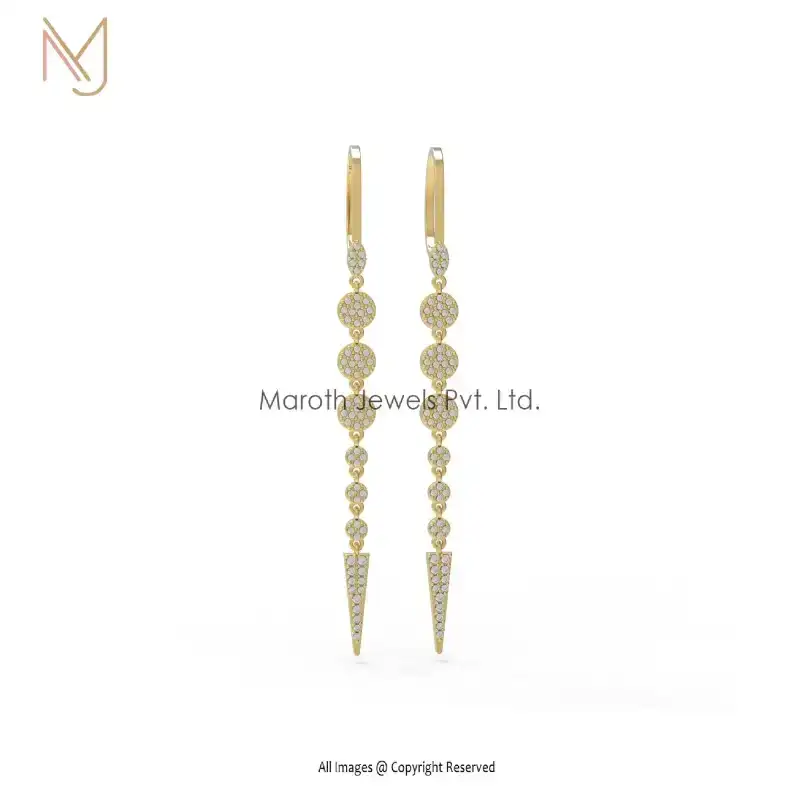 Private Label 14K Yellow Gold White Diamond Clip Lock Drop Earrings