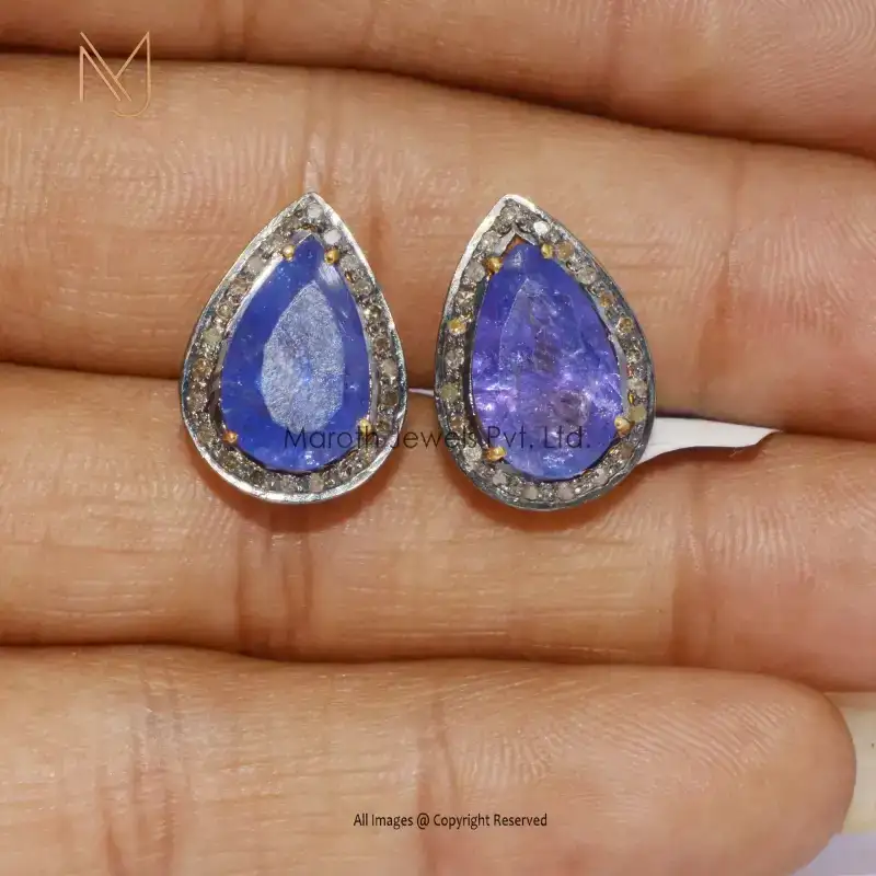 Private Label 925 Silver Pave Diamond Tanzanite Gemstone Drop Studs Earrings Jewelry
