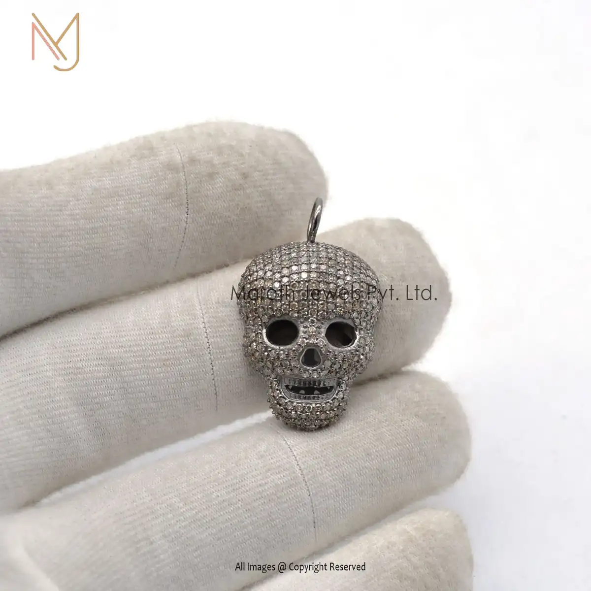 Private Label 925 Silver Rhodium Pave Diamond Skull Pendant Halloween Jewelry