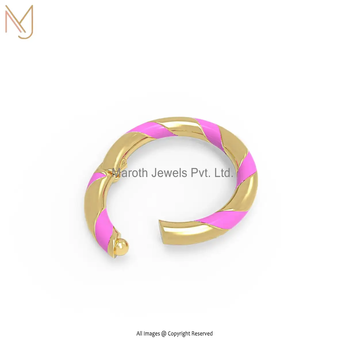 Private Label 925 Silver Yellow Gold Plated Pink Enamel Round Enhancer Jewelry