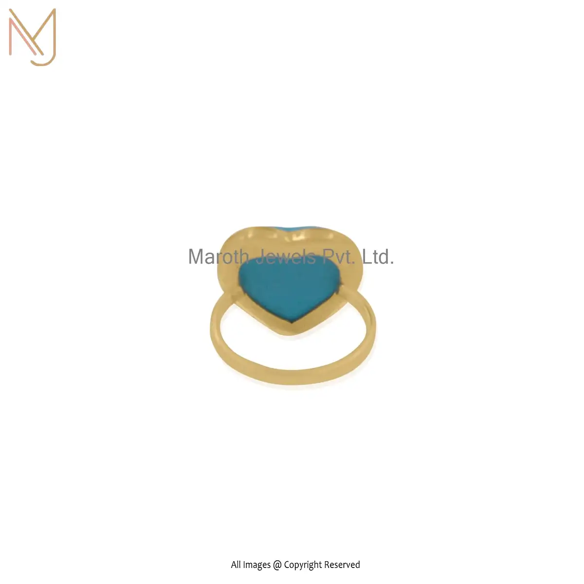 Private Label 925 Silver Yellow Gold Plated Turquoise Heart Ring