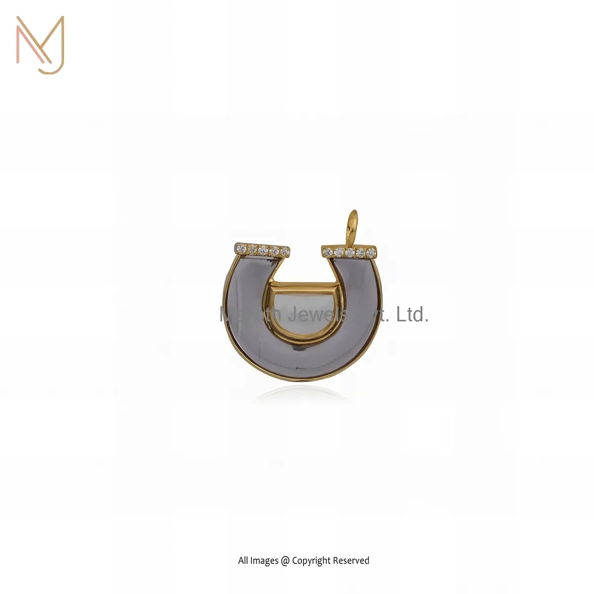 Private Lable 14K Yellow Gold Cubic Zircon & Amethyst Gemstone Horseshoe Pendant