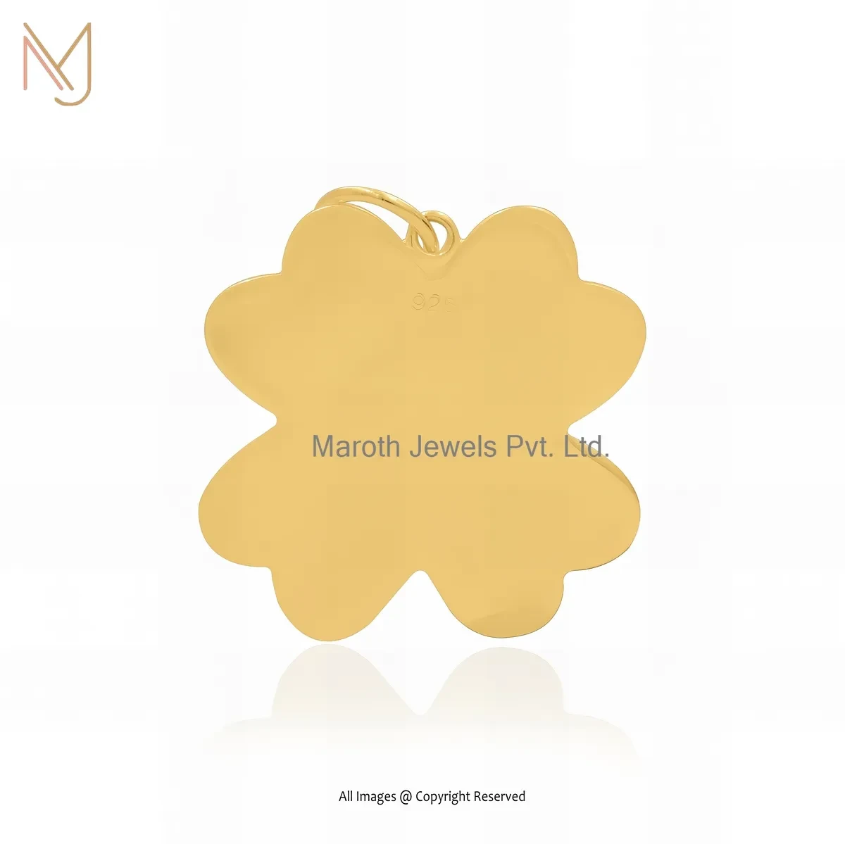 Private Lable 14K Yellow Gold Cubic Zircon Flower EM Letter Initial Pendant