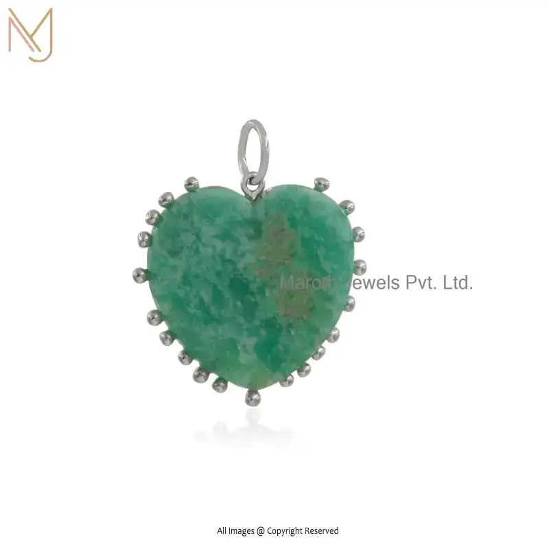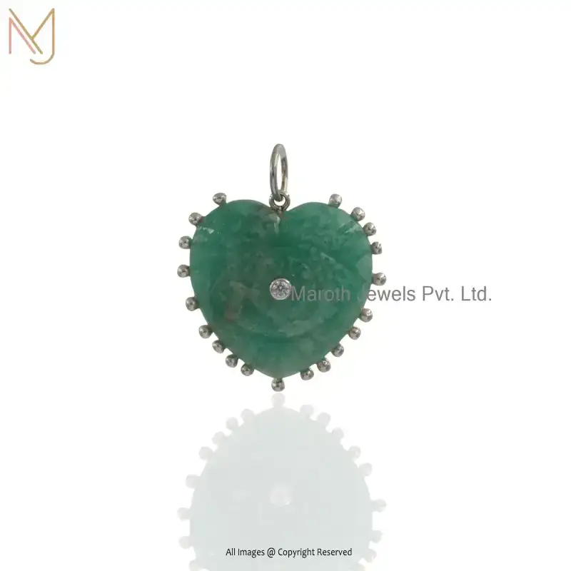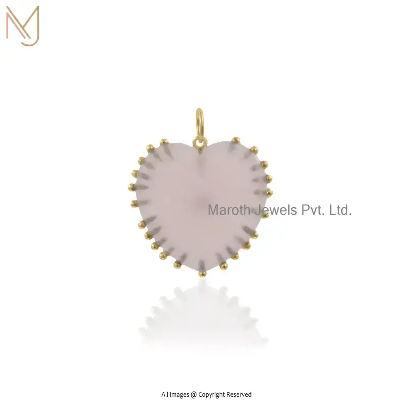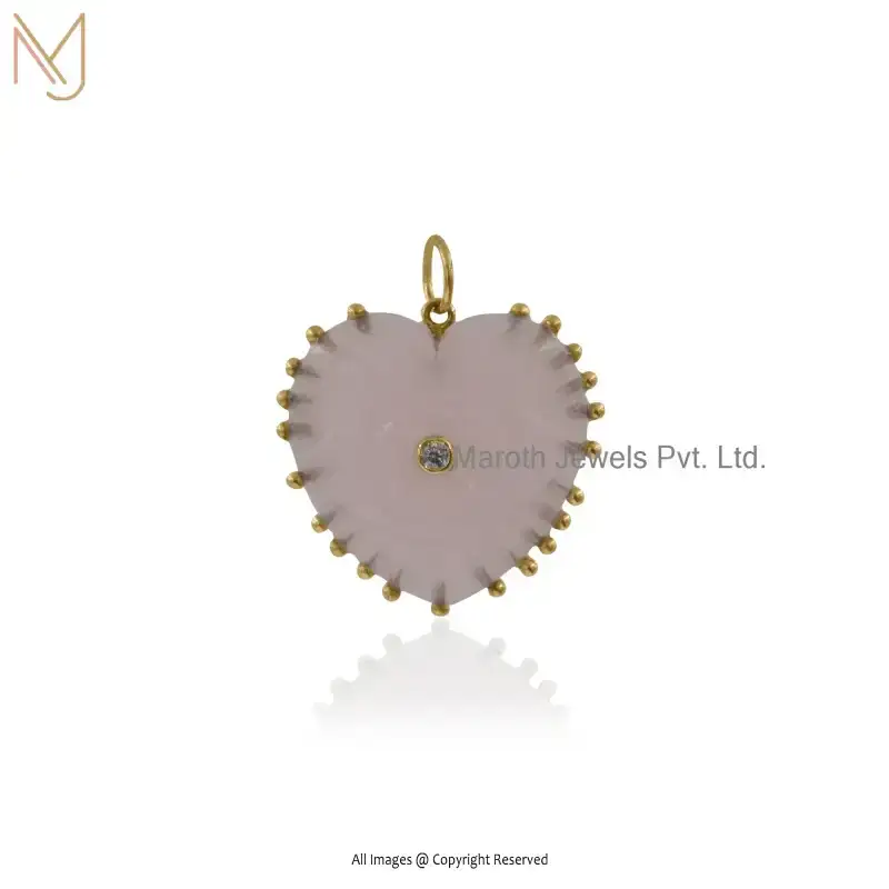 Private Lable 14K Yellow Gold Hand Carved Rose Quartz And White Topaz Heart Pendant Jewelry