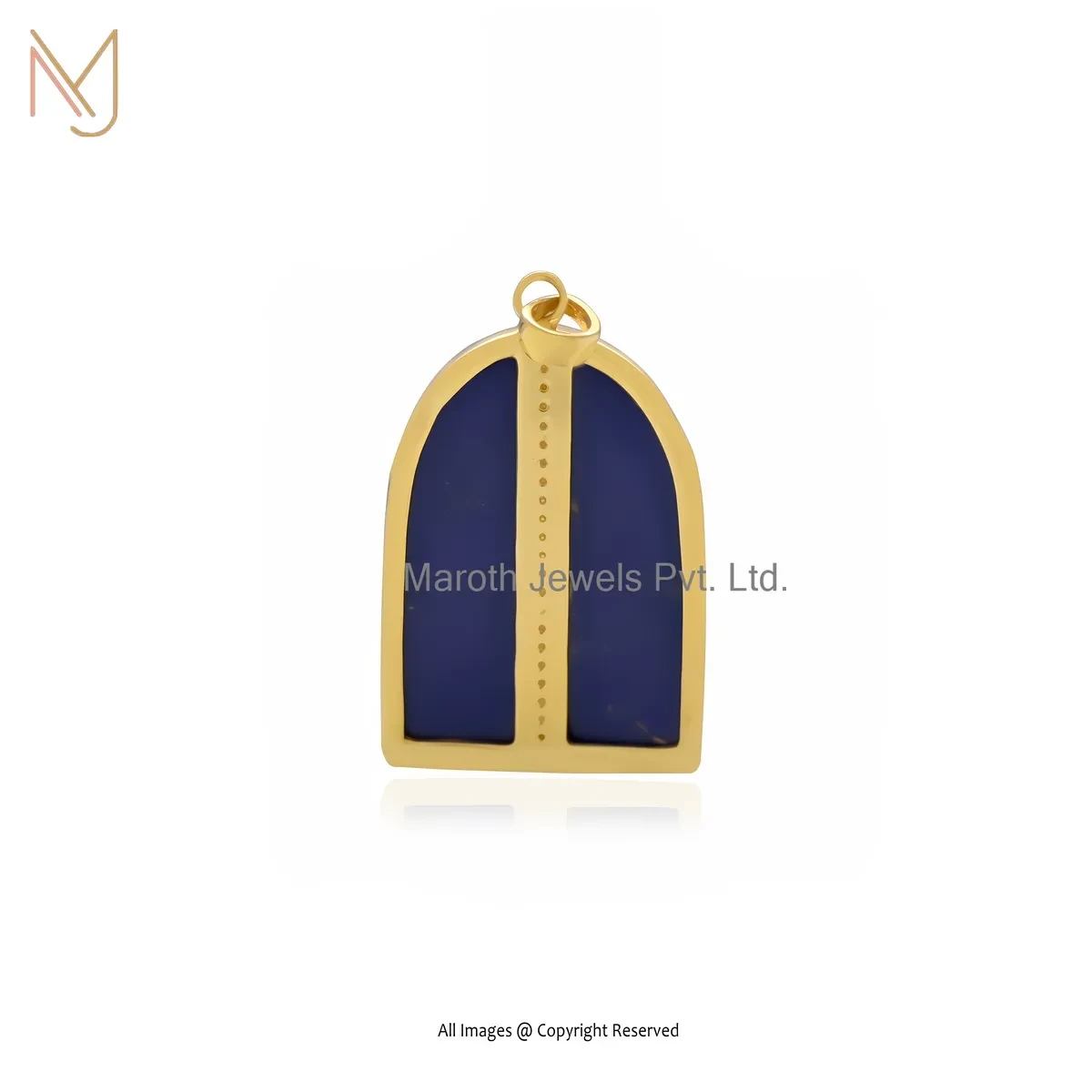 Private Lable 14K Yellow Gold Lapiz Lazuli Cubic Zircon Handmade Gemstone Pendant
