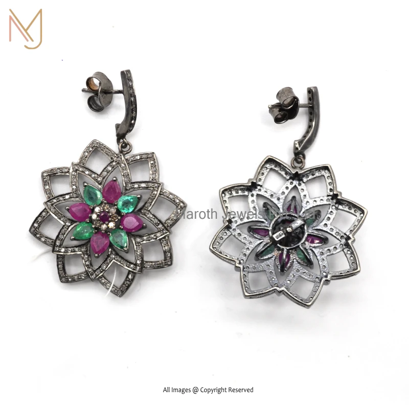 Private Lable 14K Yellow Gold Pave Diamond Emerald And Ruby Star Shape Earring
