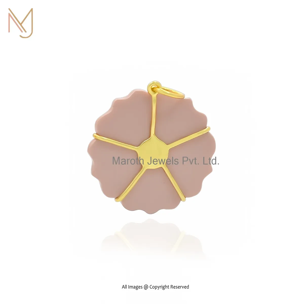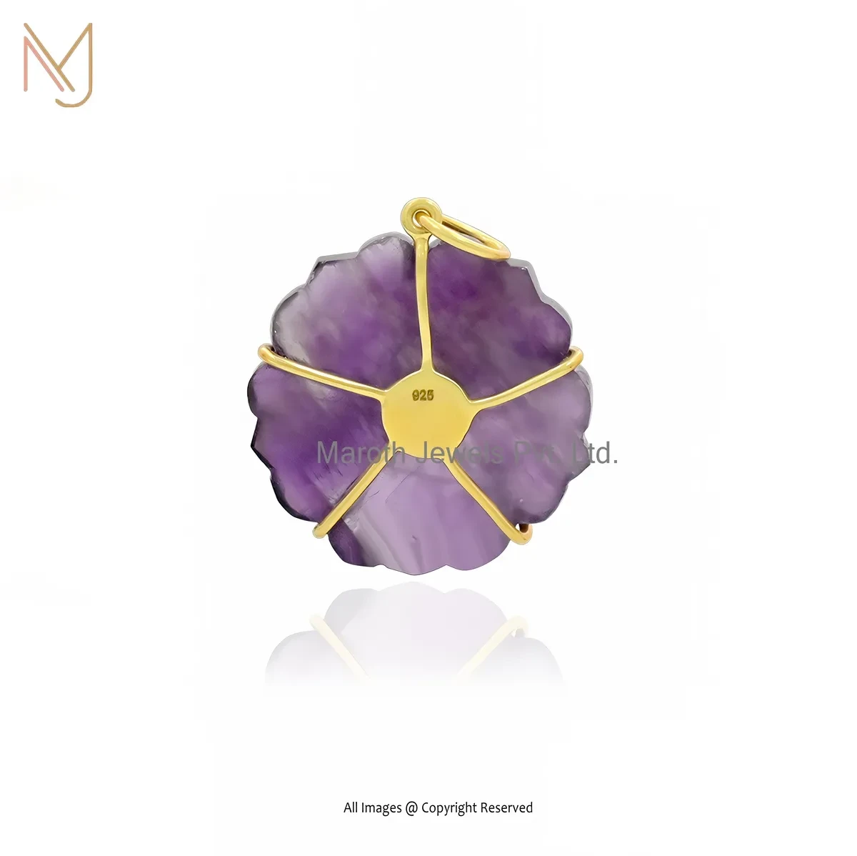 Private Lable 14K Yellow Gold Pink Sapphire & Amethyst Flower Pendant