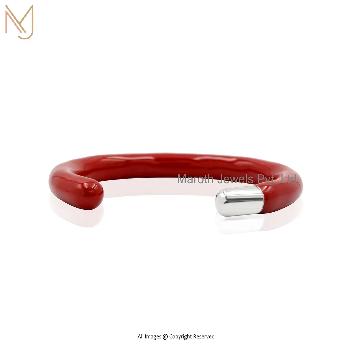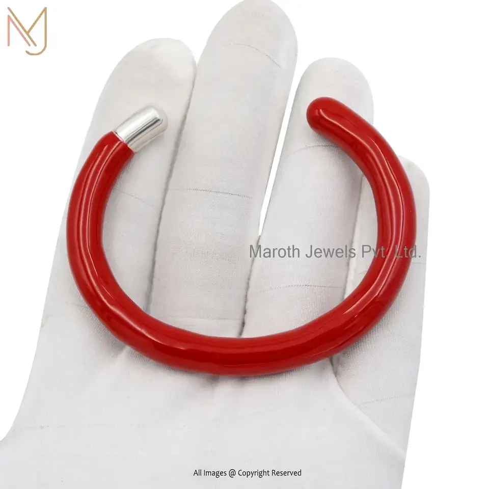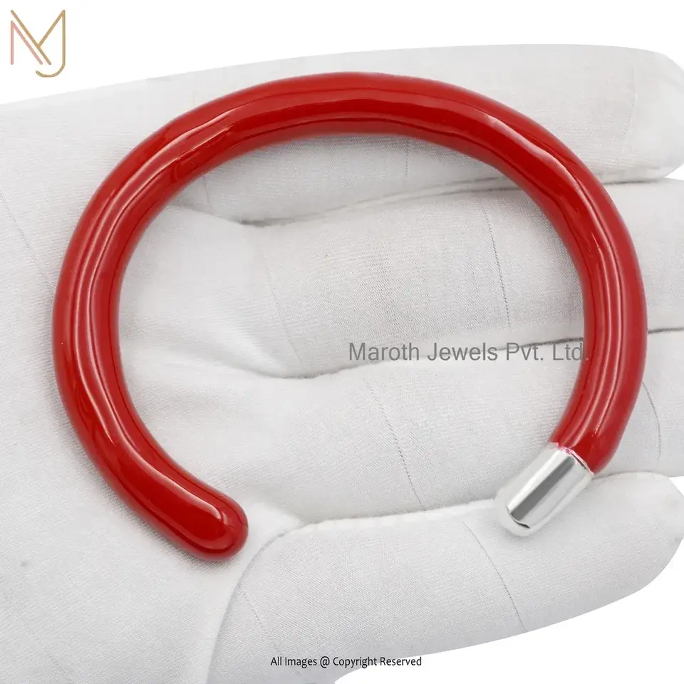 Private Lable 14K Yellow Gold Red Enamel Pipe Prodector Bracelet