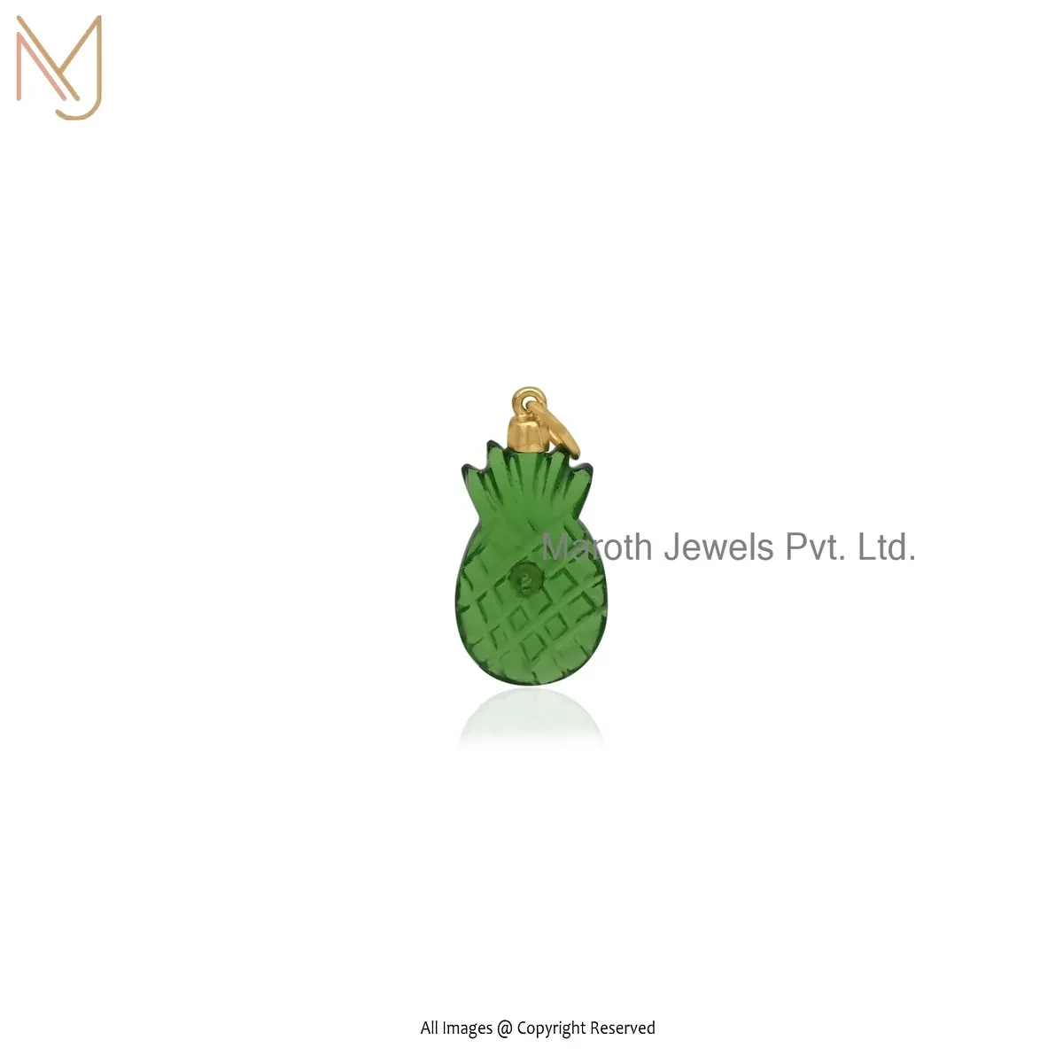 Private Lable 14K Yellow Gold Ruby Cubic Zircon & Green Opal Pineapple Pendant