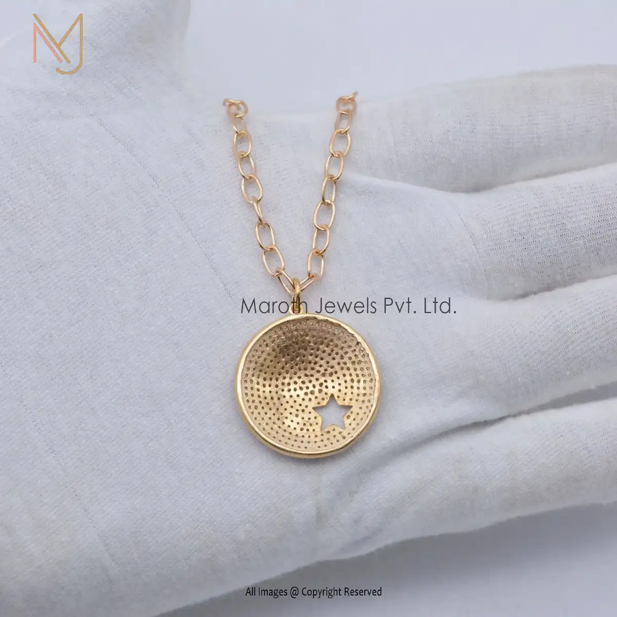 Private Lable 14K Yellow Gold Solid Pave Diamond Star Disk Pendant Jewelry