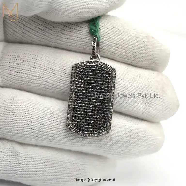 Private Lable 925 Silver Black Rhodium Plated Double Side White & Black Diamond Dog Tag Pendant Jewelry