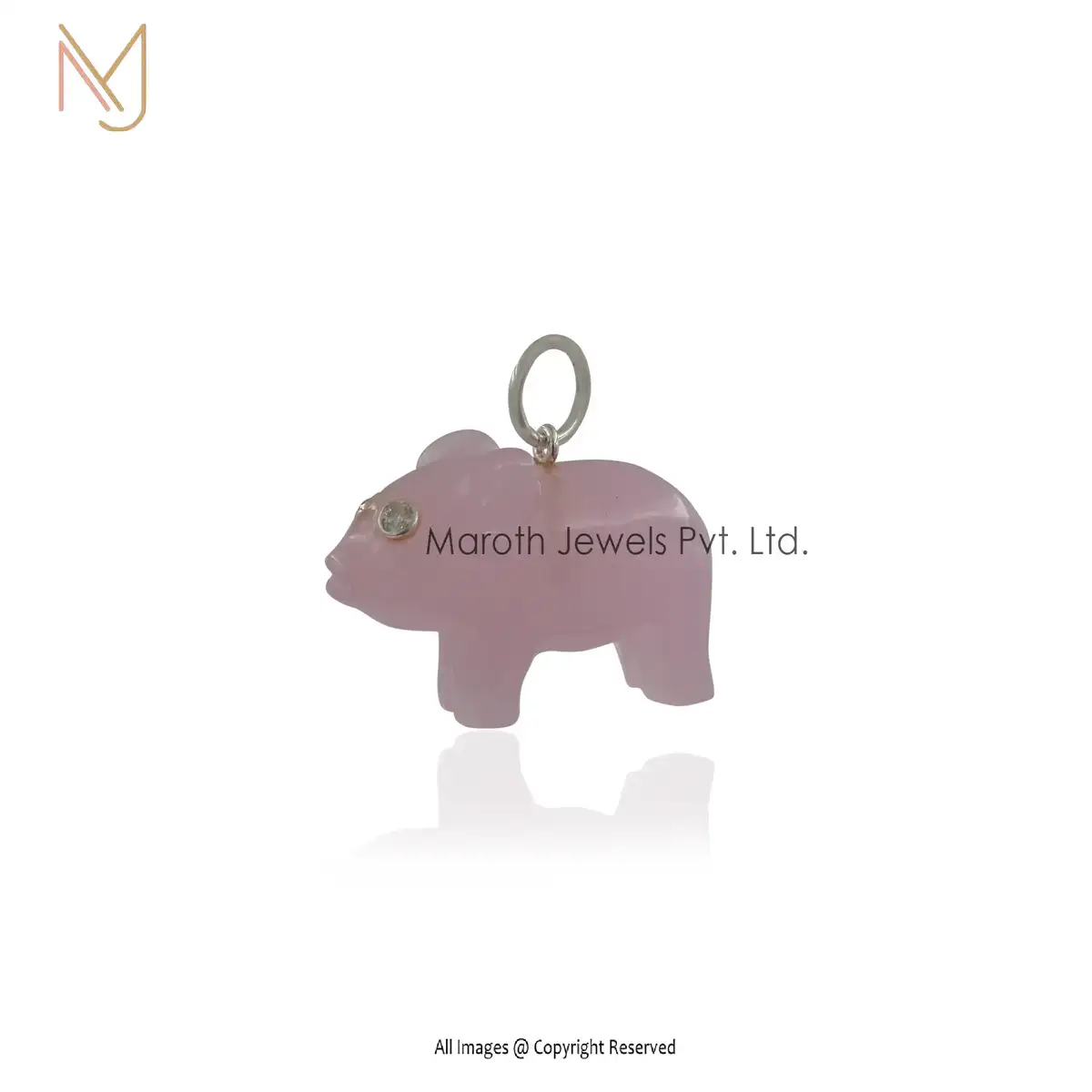 Private Lable 925 Silver Natural Silver Rose Quartz Pig Pendant Jewelry