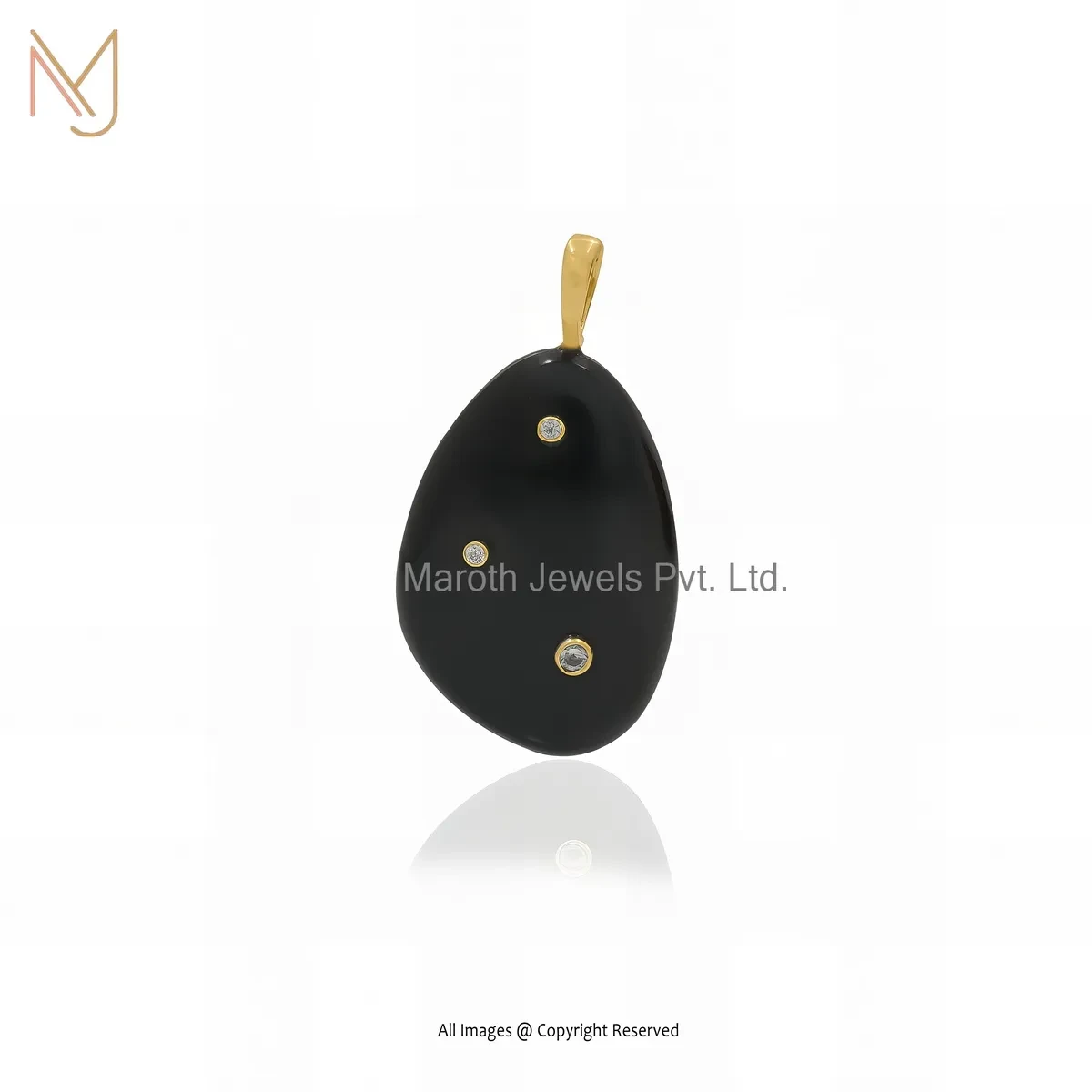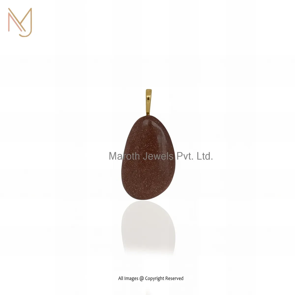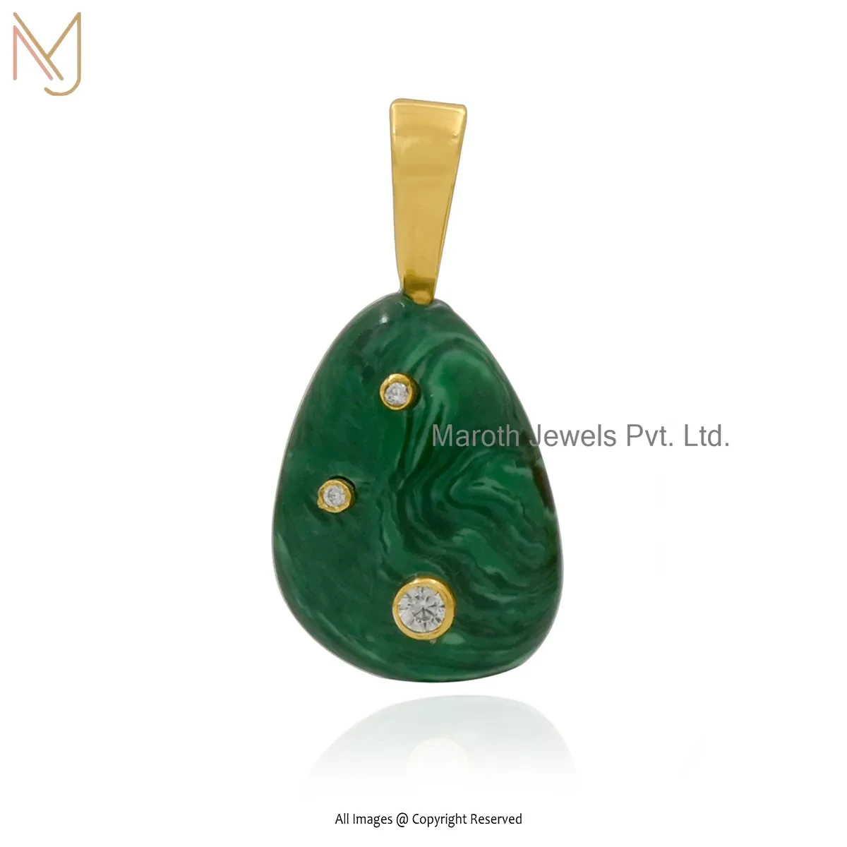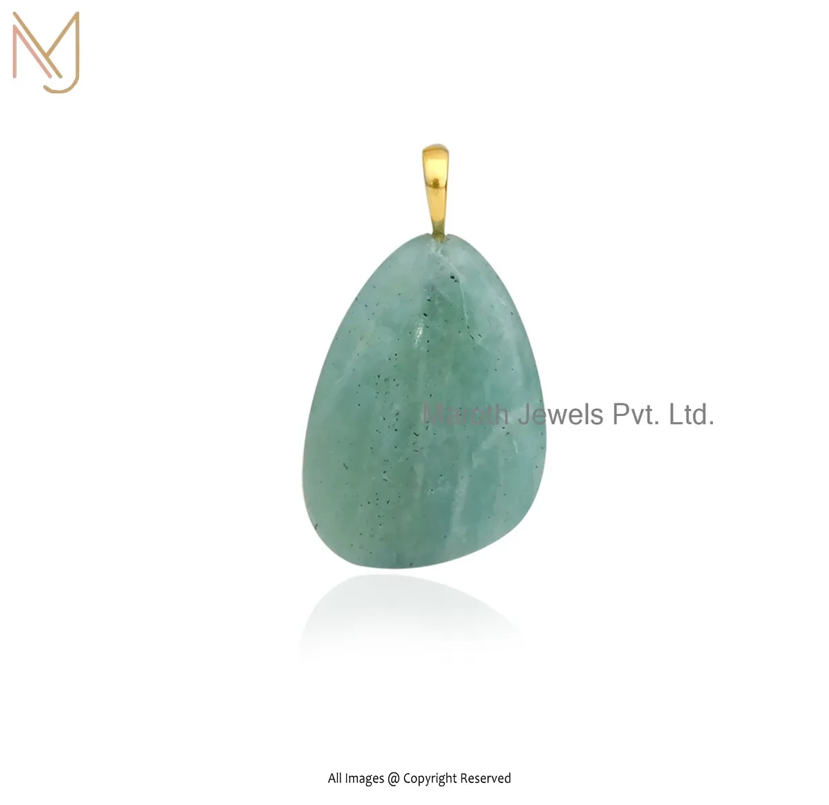 Private Lable 925 Silver Yellow Gold Plated Cubic Zircon & Amazonite Gemstone Teardrop Pendant