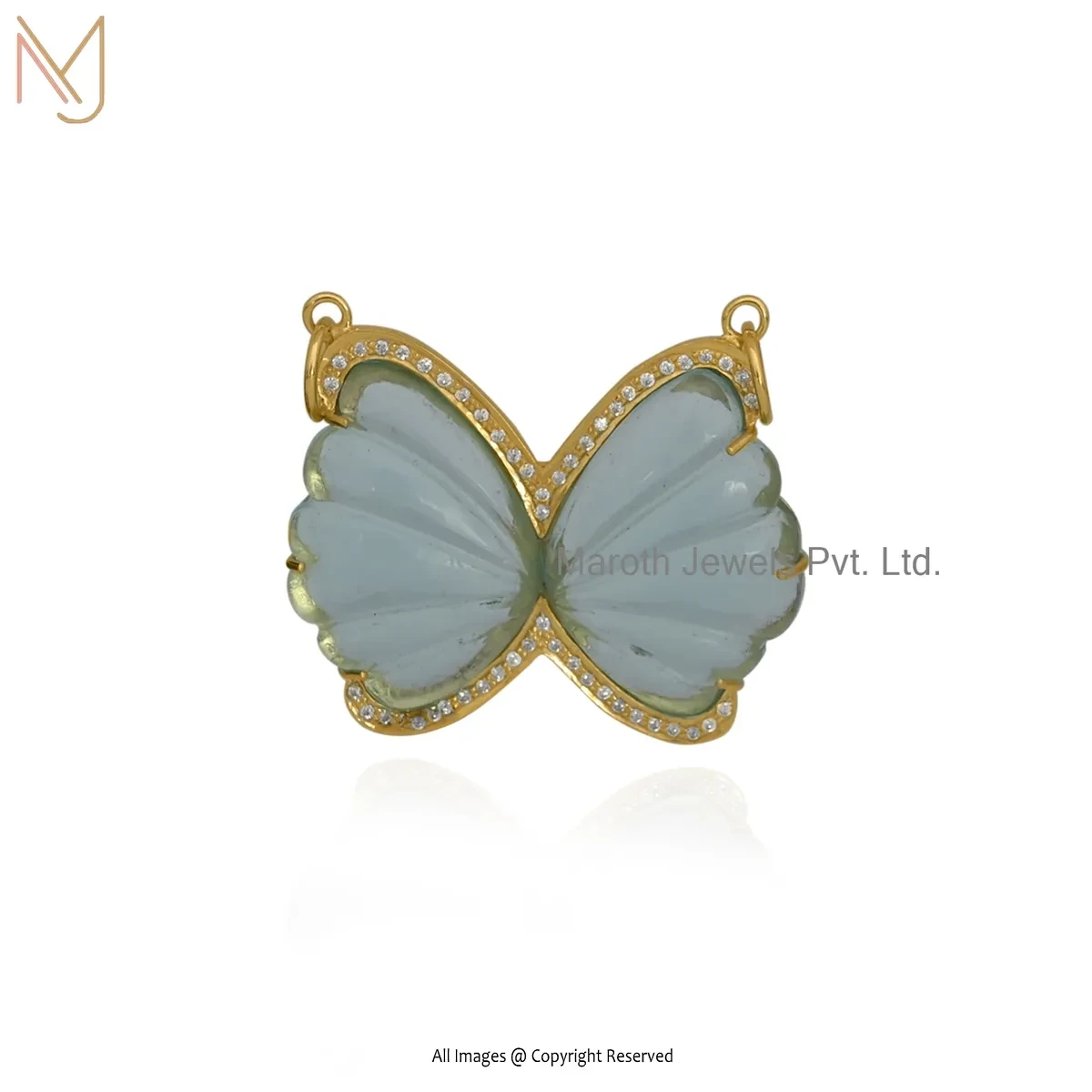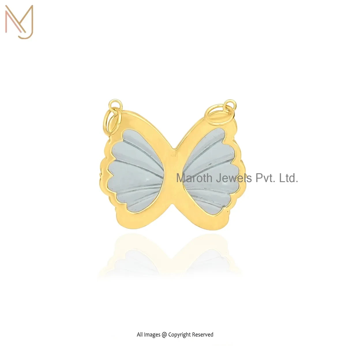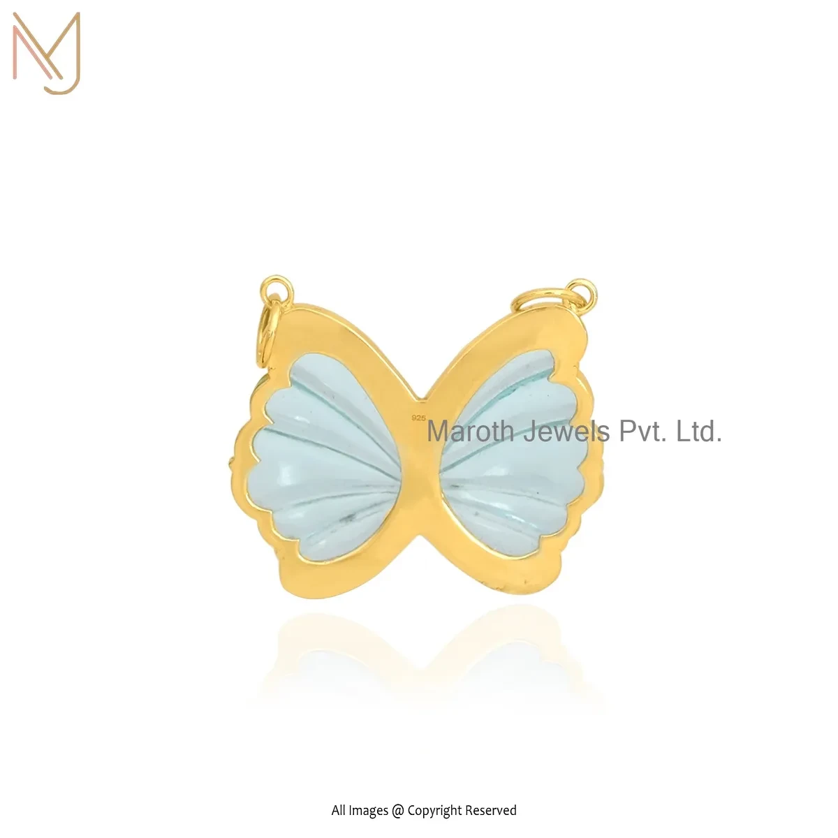 Private Lable 925 Silver Yellow Gold Plated Cubic Zircon & Aquamarine Butterfly Pendant