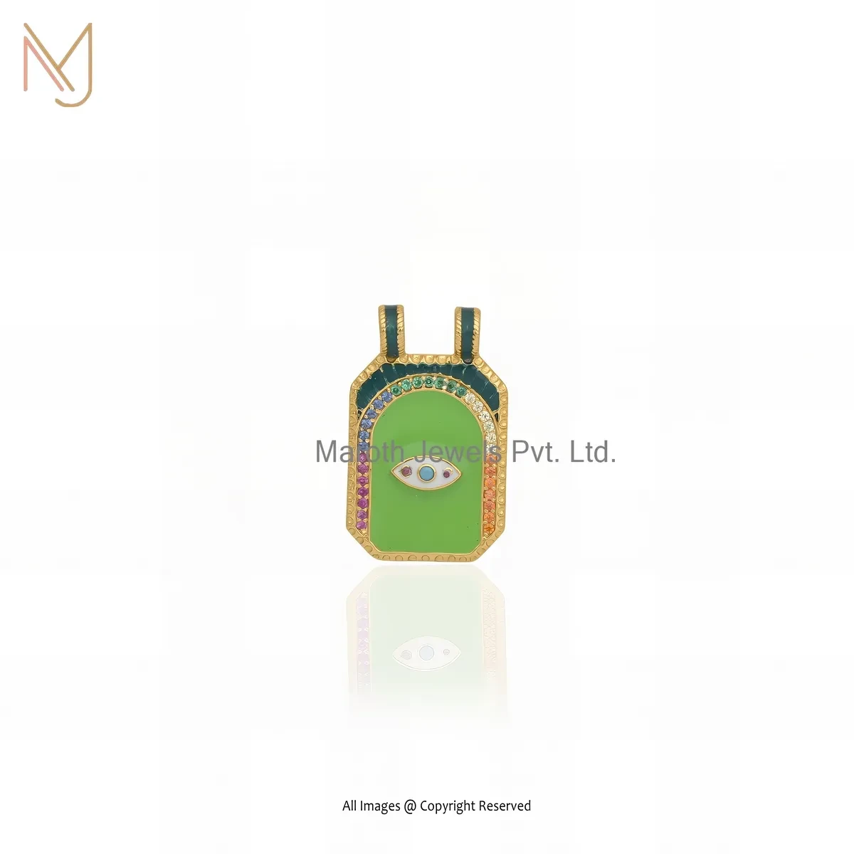 Private Lable 925 Silver Yellow Gold Plated Cubic Zircon & Enamel Evil Eye Gemstone Pendant