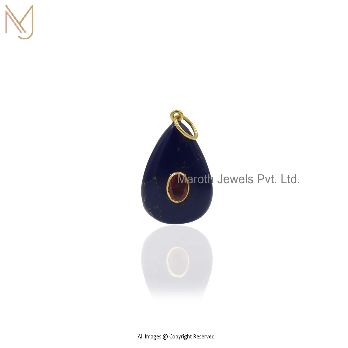 Private Lable 925 Silver Yellow Gold Plated Cubic Zircon & Lapiz Lazuli Gemstone Teardrop Pendant