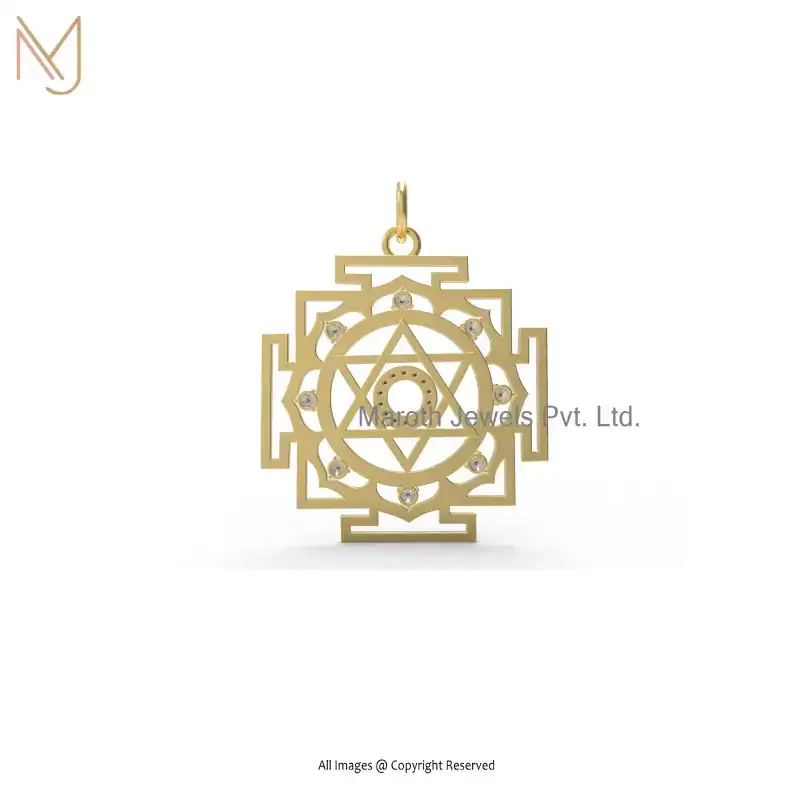 Private Lable 925 Silver Yellow Gold Plated Diamond Kuber Yantra Pendant Jewelry