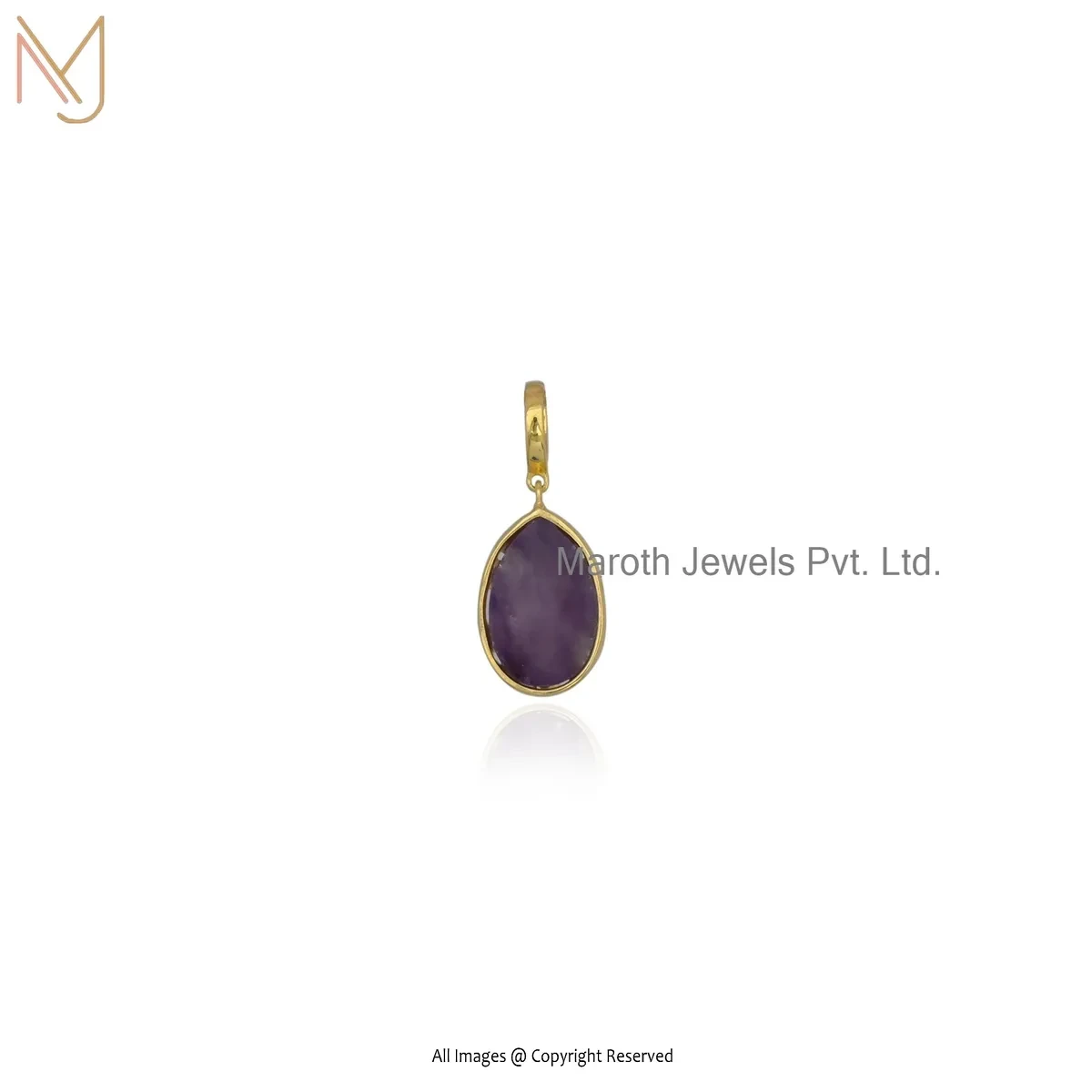 Private Lable 925 Silver Yellow Gold Plated Moissanite & Amethyst Gemstone Pineapple Pendant