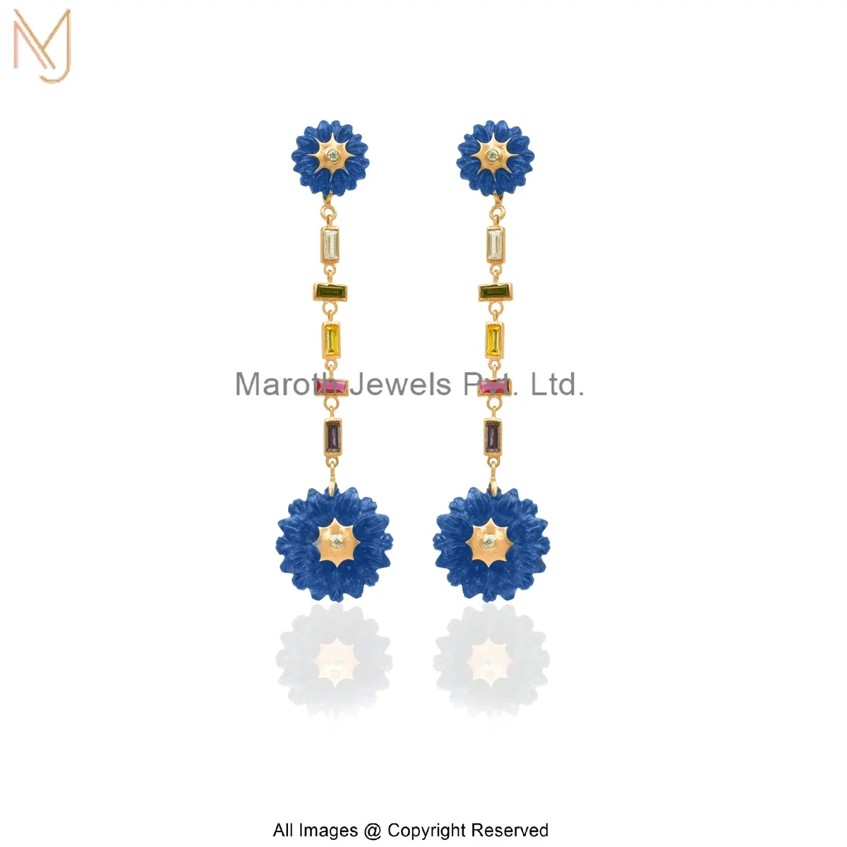 Private Lable 925 Silver Yellow Gold Plated Multi Cubic Zircon Neelkamal Bloom Gemstone Drop Earrings