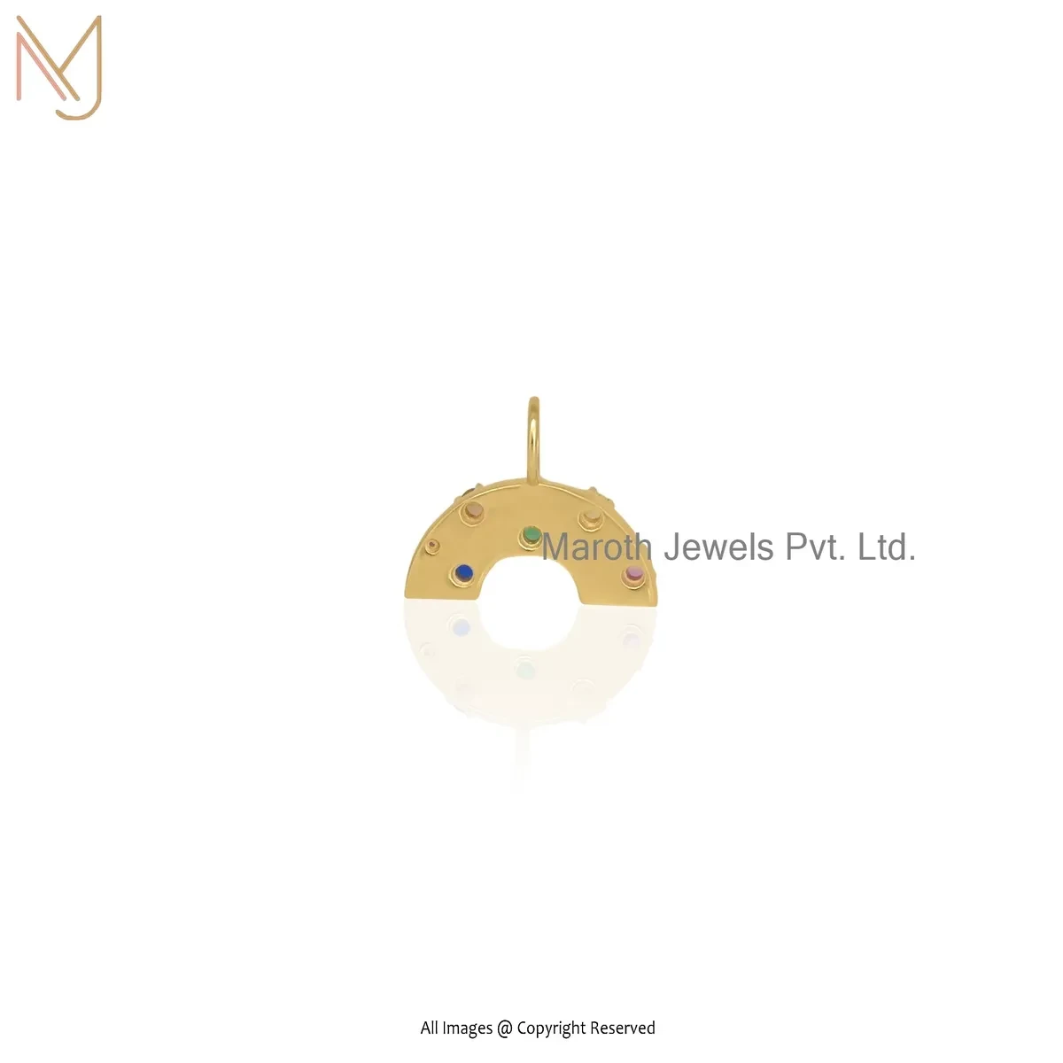 Private Lable 925 Silver Yellow Gold Plated Multi Sapphire Gemstone Rainbow Charm Pendant