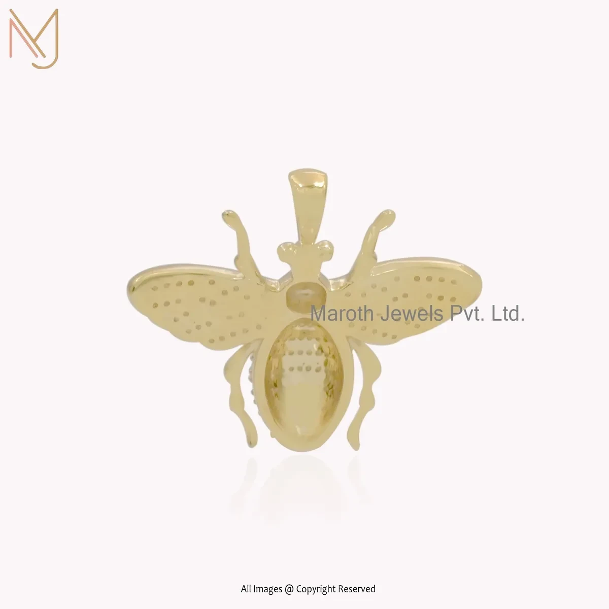 Private Lable 925 Silver Yellow Gold Plated Yellow Sapphire Honey Bee Charm Pendant