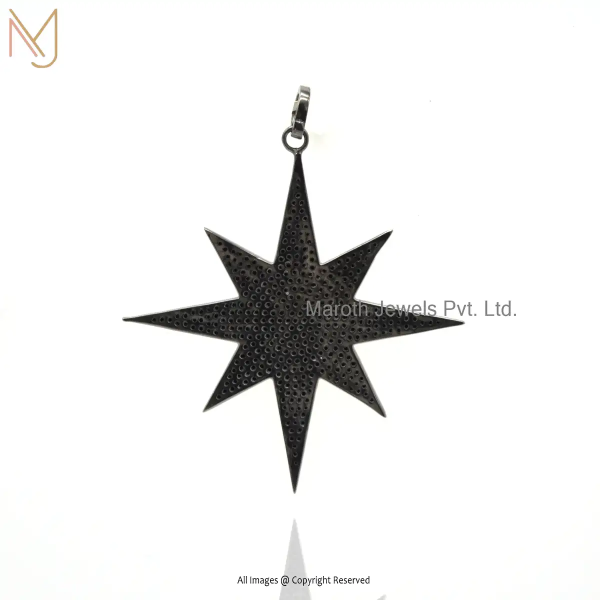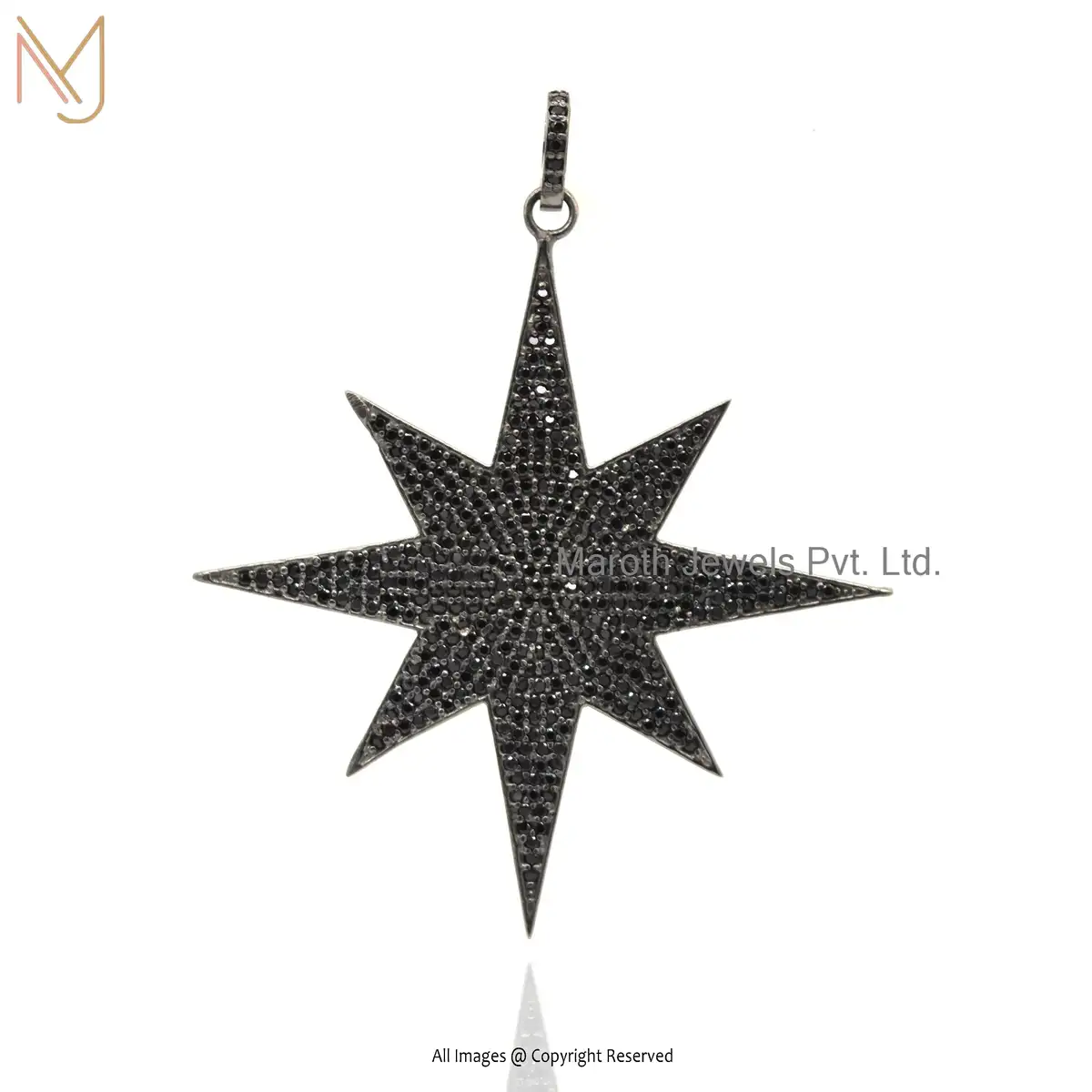 Private Lable 925 Sterling Silver Black Rhodium Plated & Black Diamond Star Pendant Jewelry