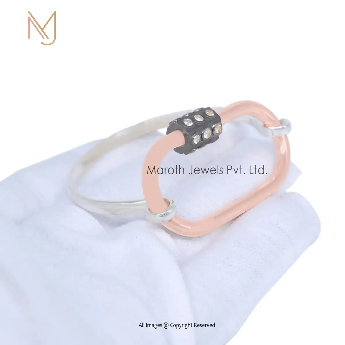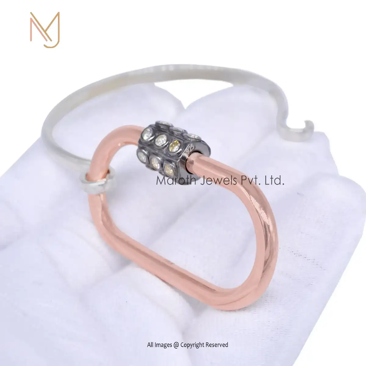 Private Lable 925 Sterling Silver Natural Silver Cuff Bangle Pave Diamond Carabiner With Bangle Jewelry