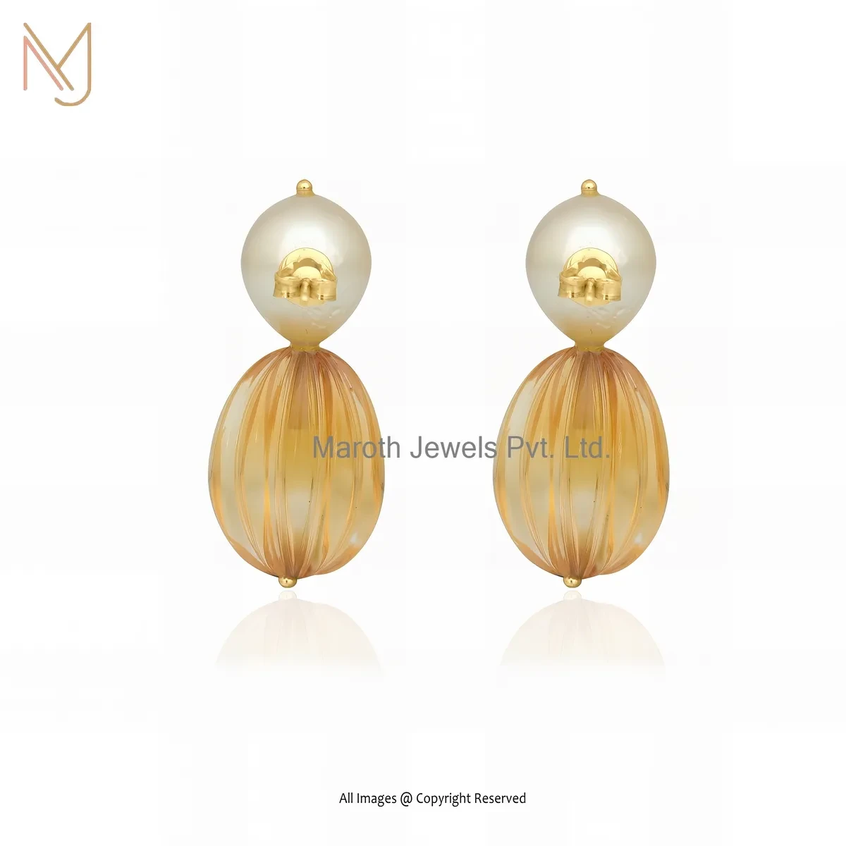 Private Lable 925 Sterling Silver Yellow Gold Plated Citrine & Pearl Drop Earring