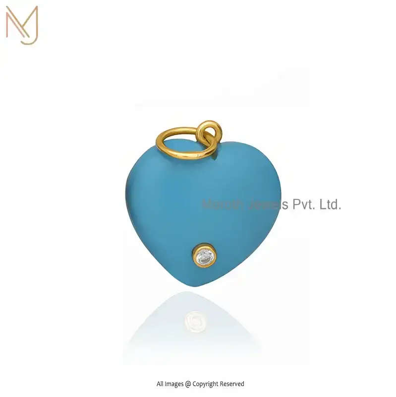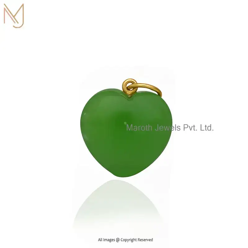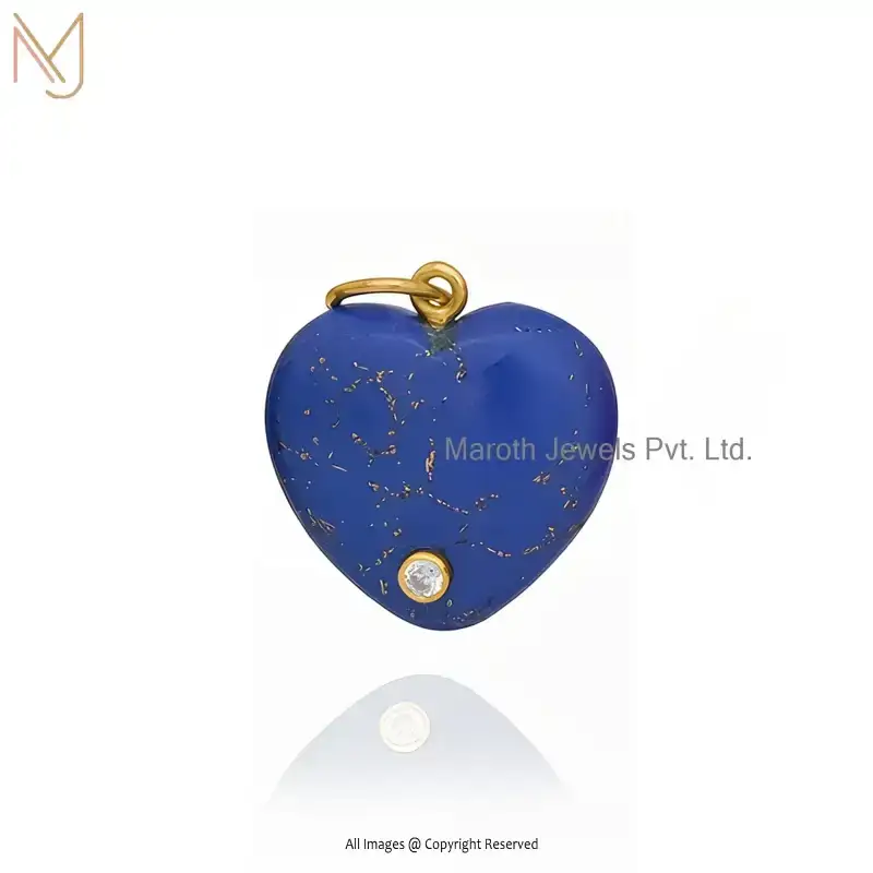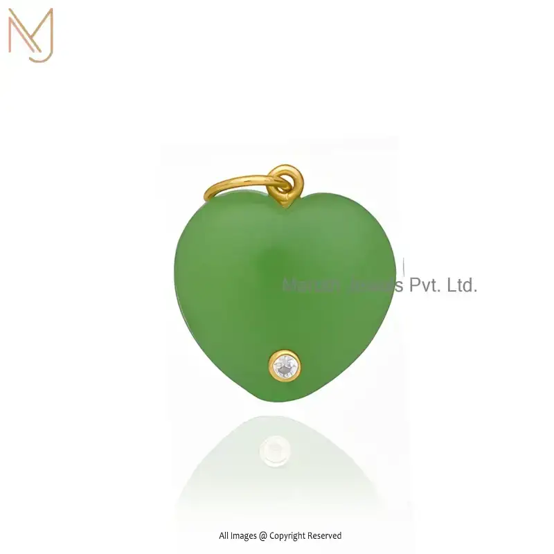 Private Lable 925 Sterling Silver Yellow Gold Plated Malachite And White CZ Heart Gemstone Pendant\