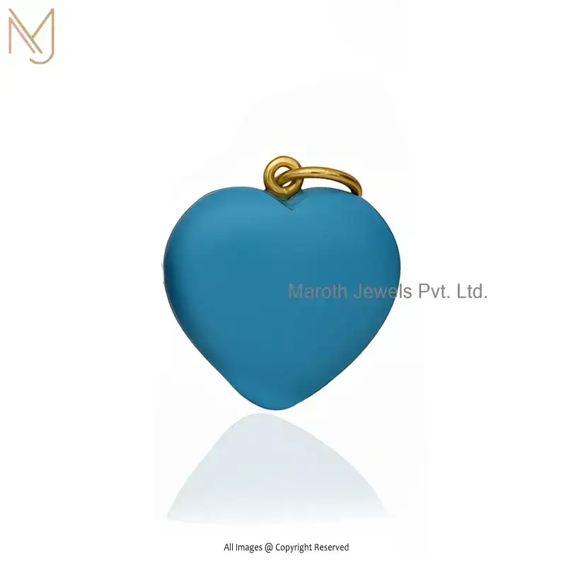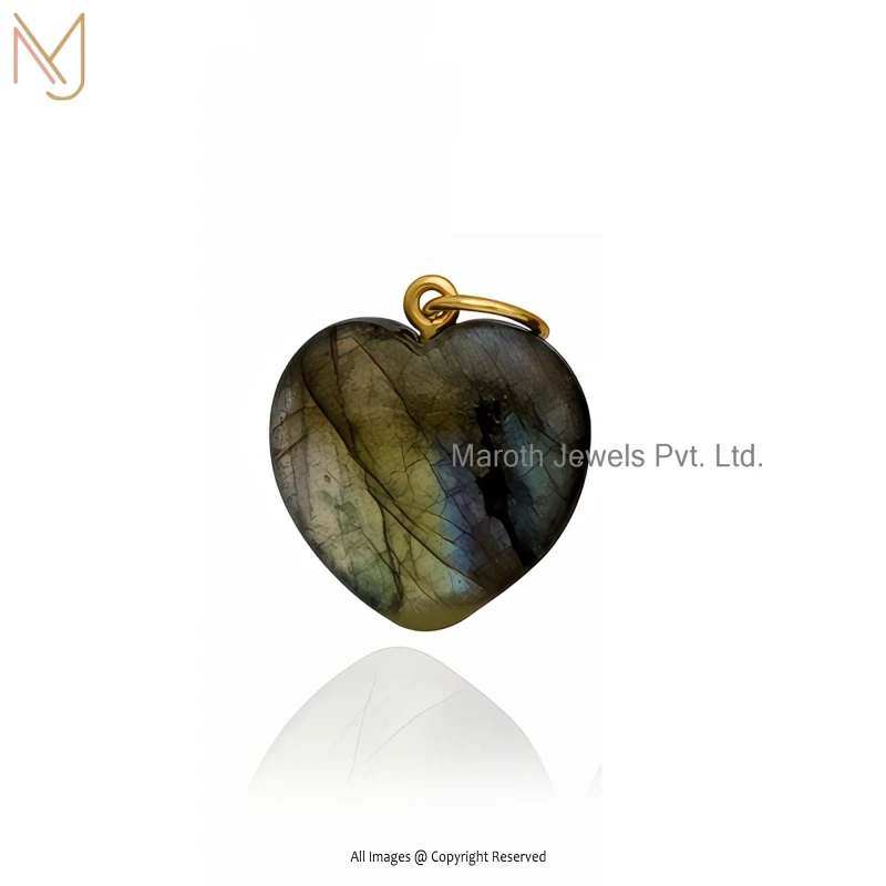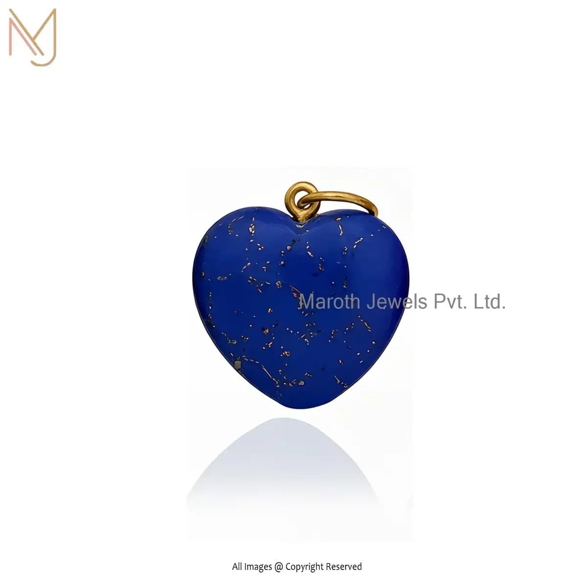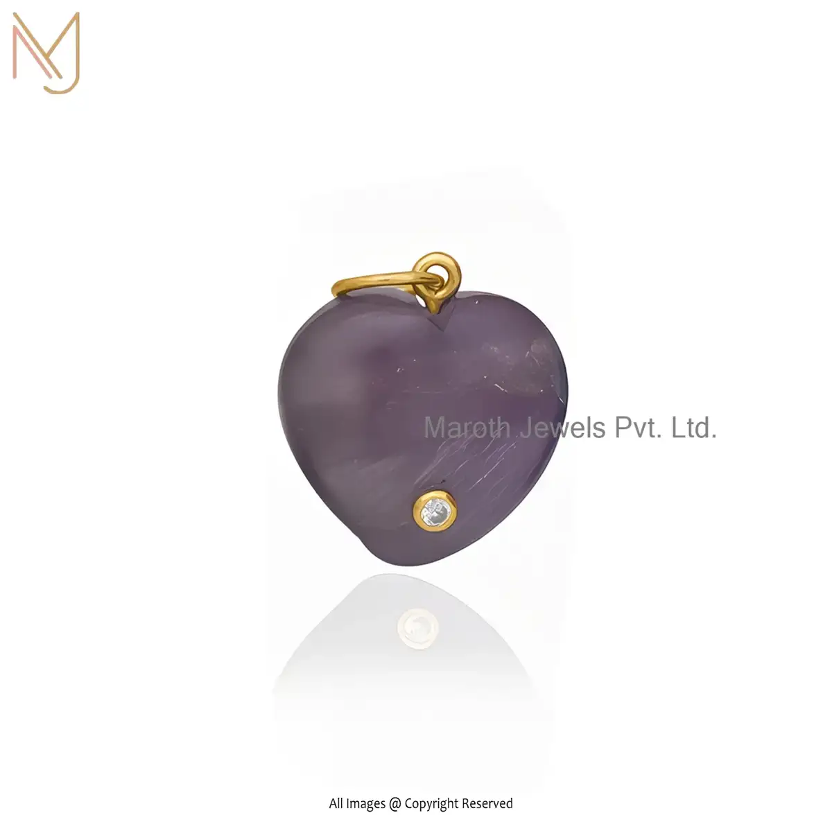 Private Lable 925 Sterling Silver Yellow Gold Plated Malachite And White CZ Heart Gemstone Pendant\