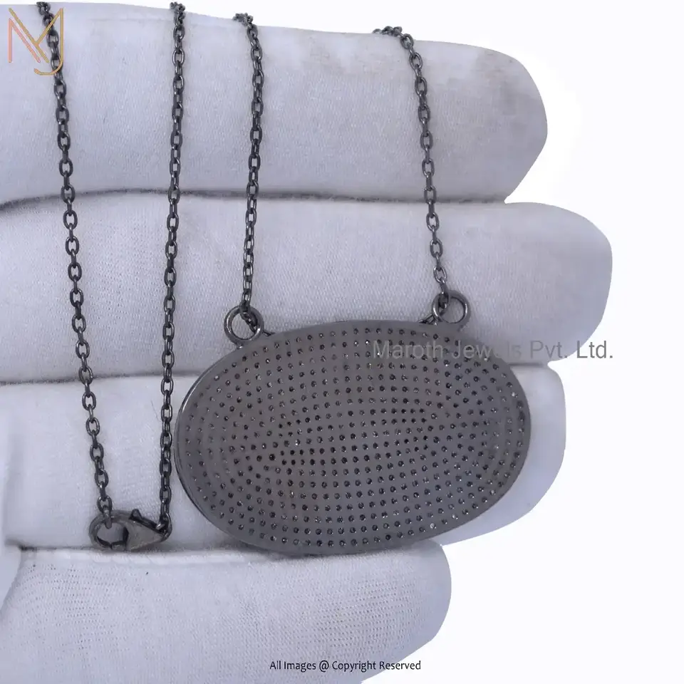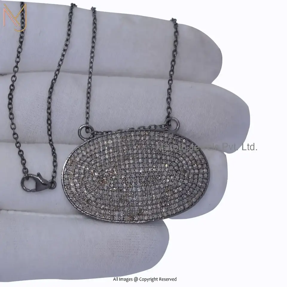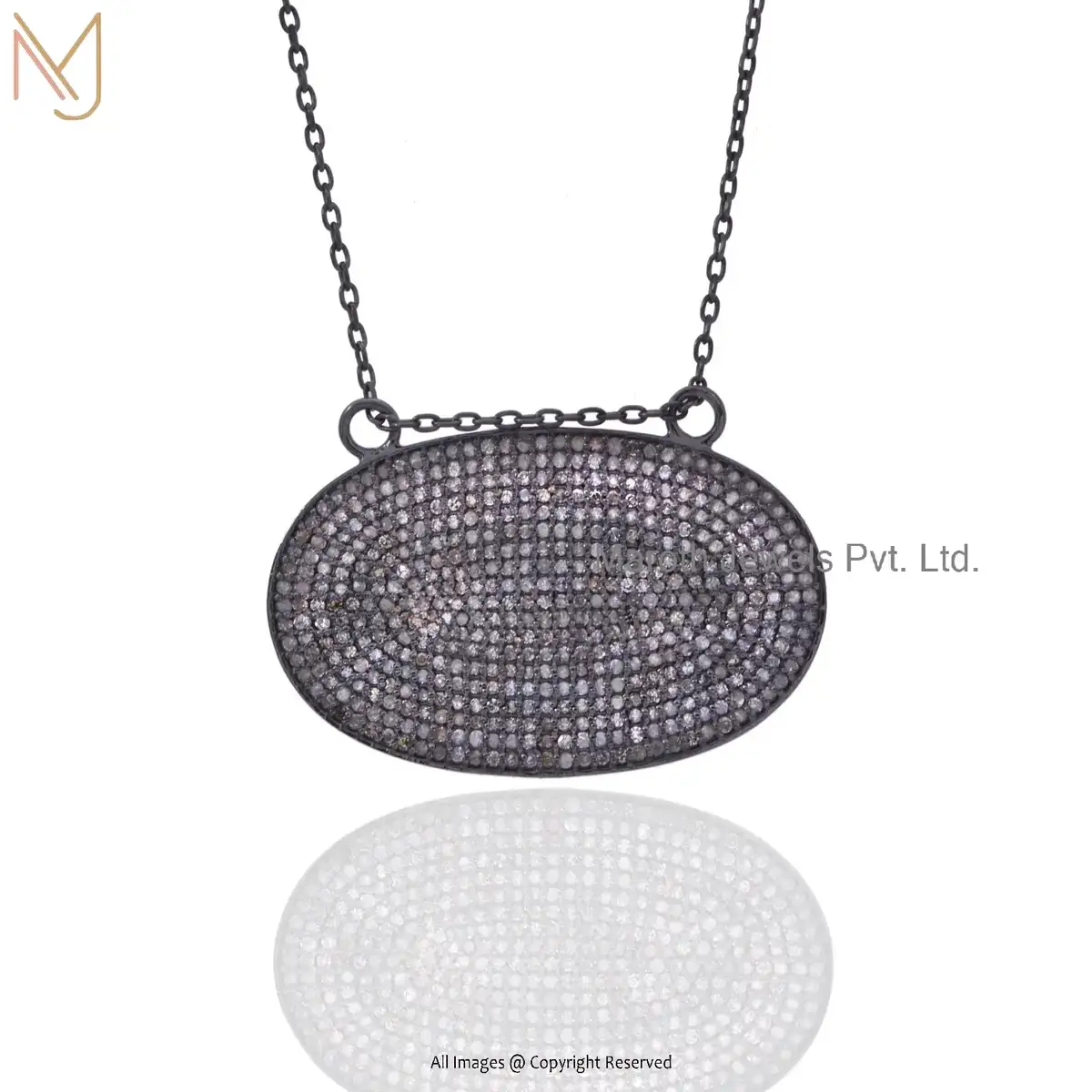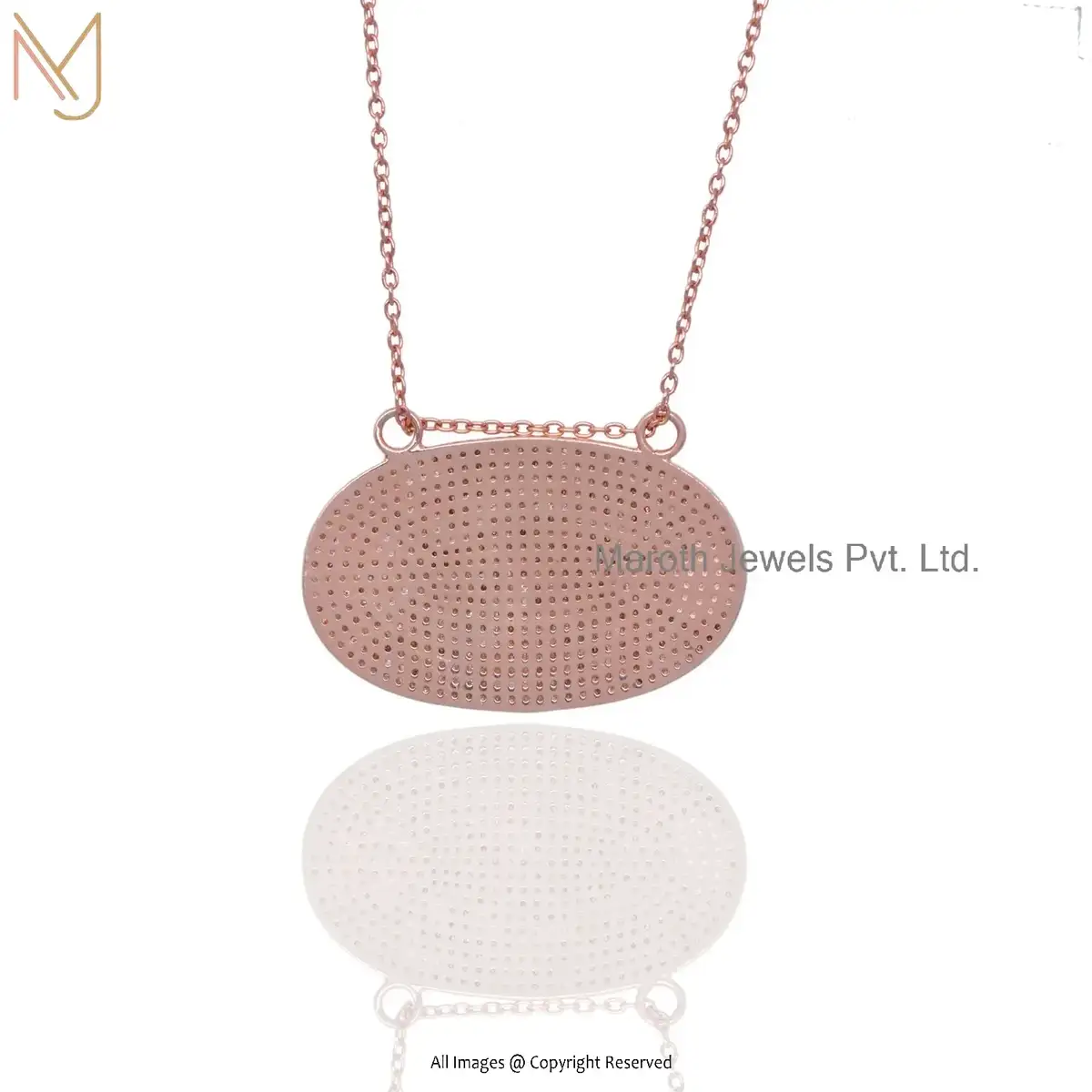 Wholesale 14K Rose Gold Pave Diamond Oval Disc Pendant Jewelry