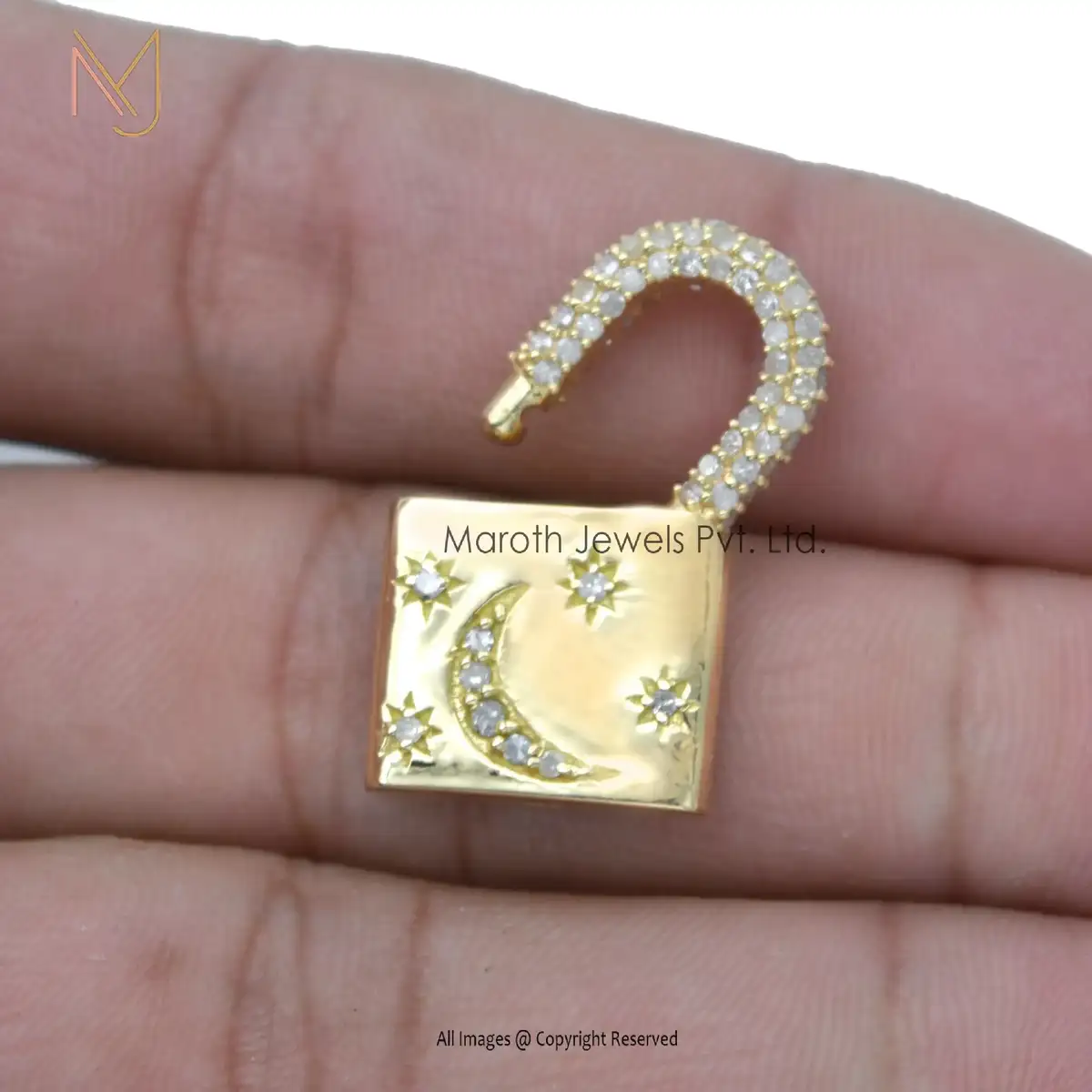 Wholesale 14K Rose Gold Pave Diamond Padlock Openable Pendant Jewelry