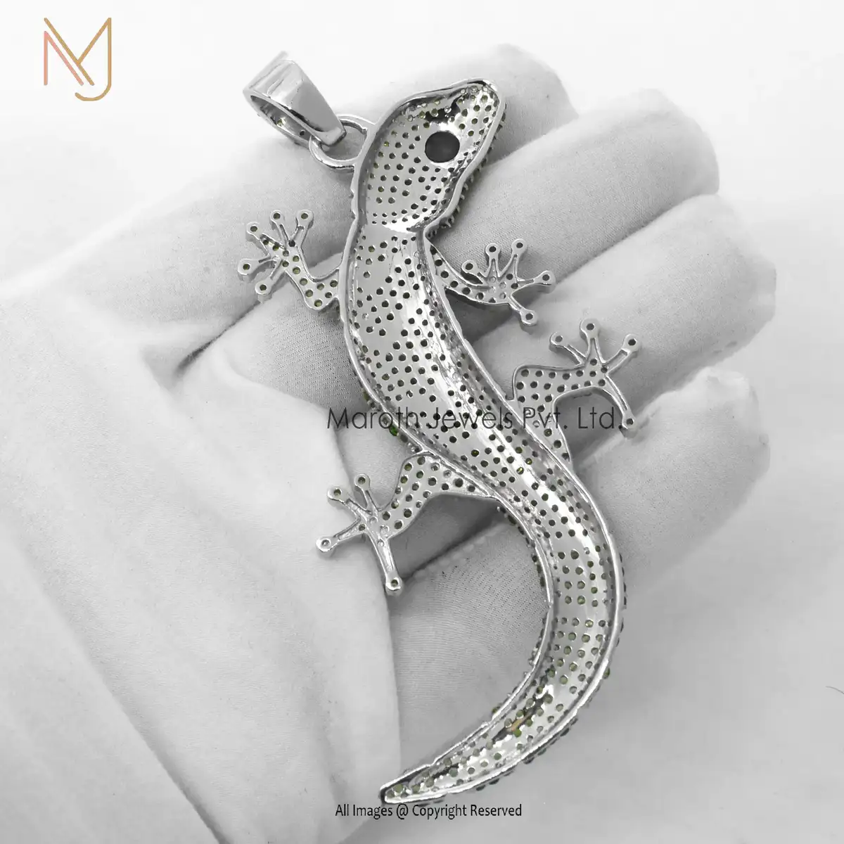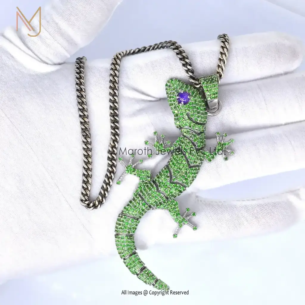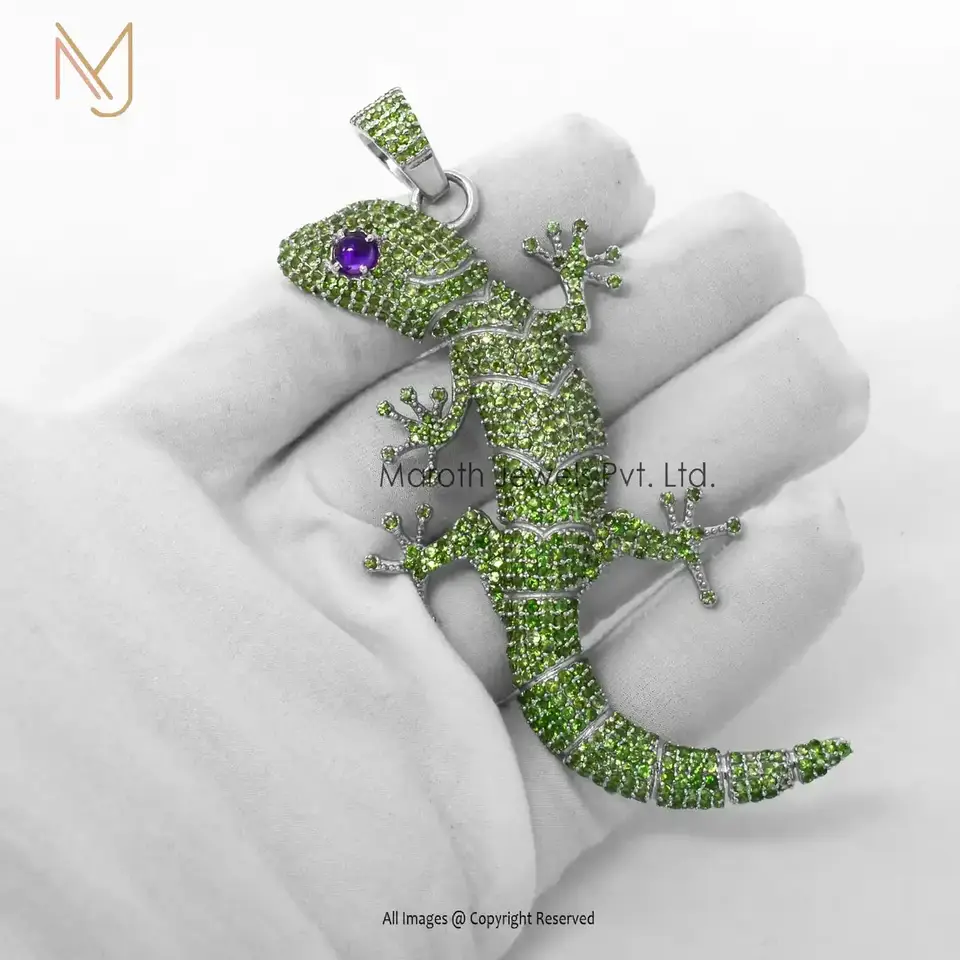 Wholesale 14K White Gold Tsavorite & Amethyst Antique Gecko Lizard Pendant Jewelry