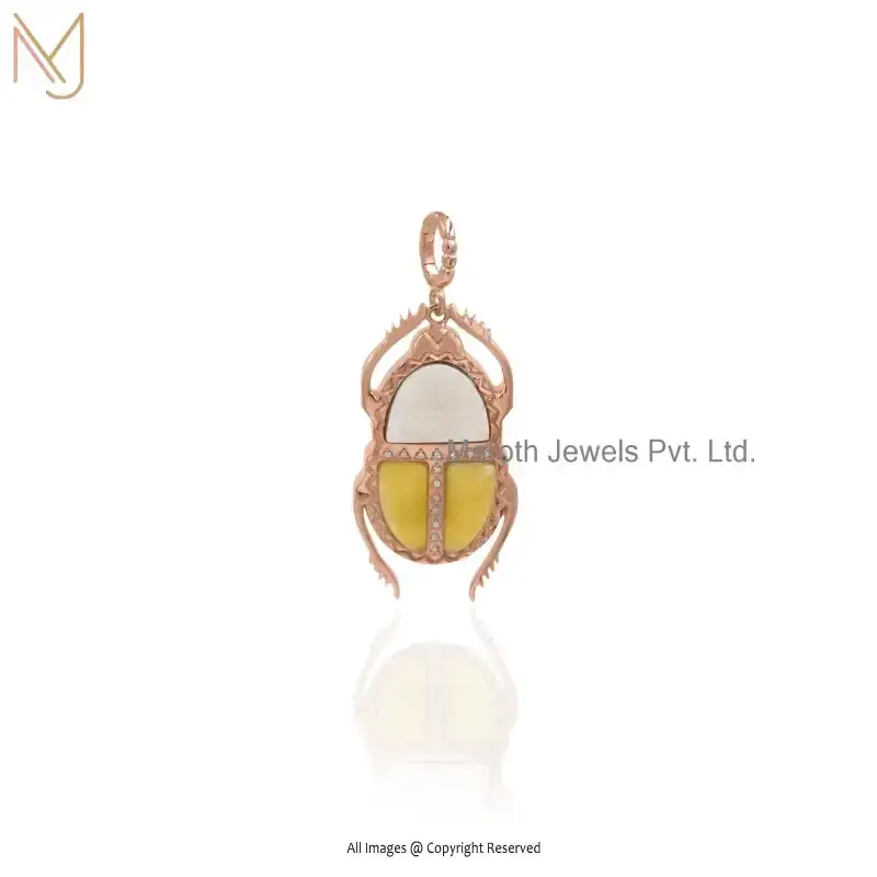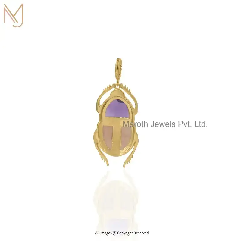 Wholesale 14K Yellow Gold Amethyst And Opal White Cubic Zircon Gemstone Scarab Pendant