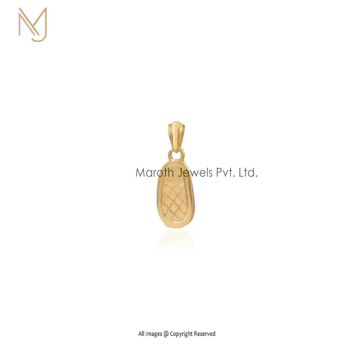 Wholesale 14K Yellow Gold Baby Shoe Pink Enamel Charm Pendant Jewelry