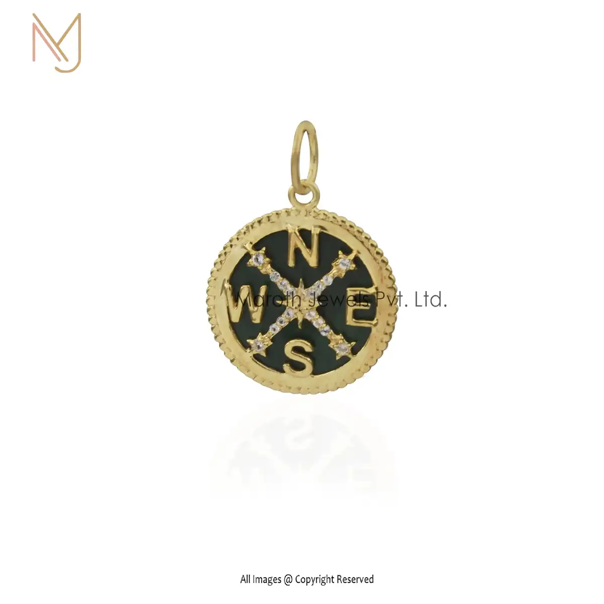 Wholesale 14K Yellow Gold Black Onyx Gemstone Compass Pendant Jewelry